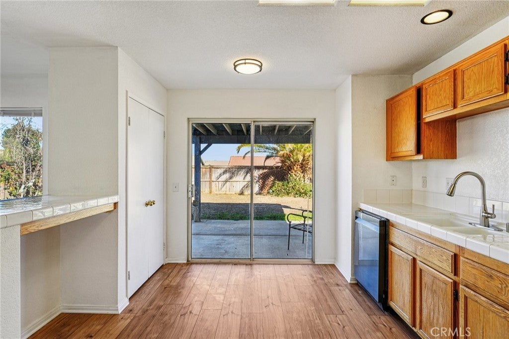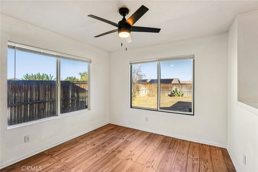 Beautiful 4-Bedroom Home with Resort-Style Backyard This inviting 4-bedroom, 2-bath home offers 1,580 sq. ft. of comfortable living space, designed for both relaxation and entertaining. The open-concept kitchen flows seamlessly into the living room, complete with a cozy fireplace and sliding doors that lead to your private backyard retreat. Step outside to enjoy 7,261 sq. ft. of outdoor space featuring a covered patio, lush landscaping, and palm trees that create a serene, resort-like atmosphere—perfect for gatherings or quiet evenings under the stars. Built in 2005, this home boasts modern updates including fresh paint, wood laminate flooring, an interior laundry room, and a spacious 2-car garage. A perfect blend of style, comfort, and outdoor living awaits!