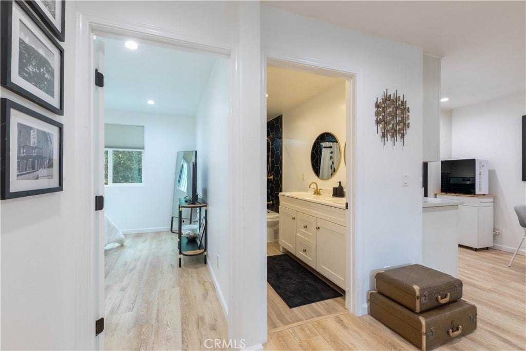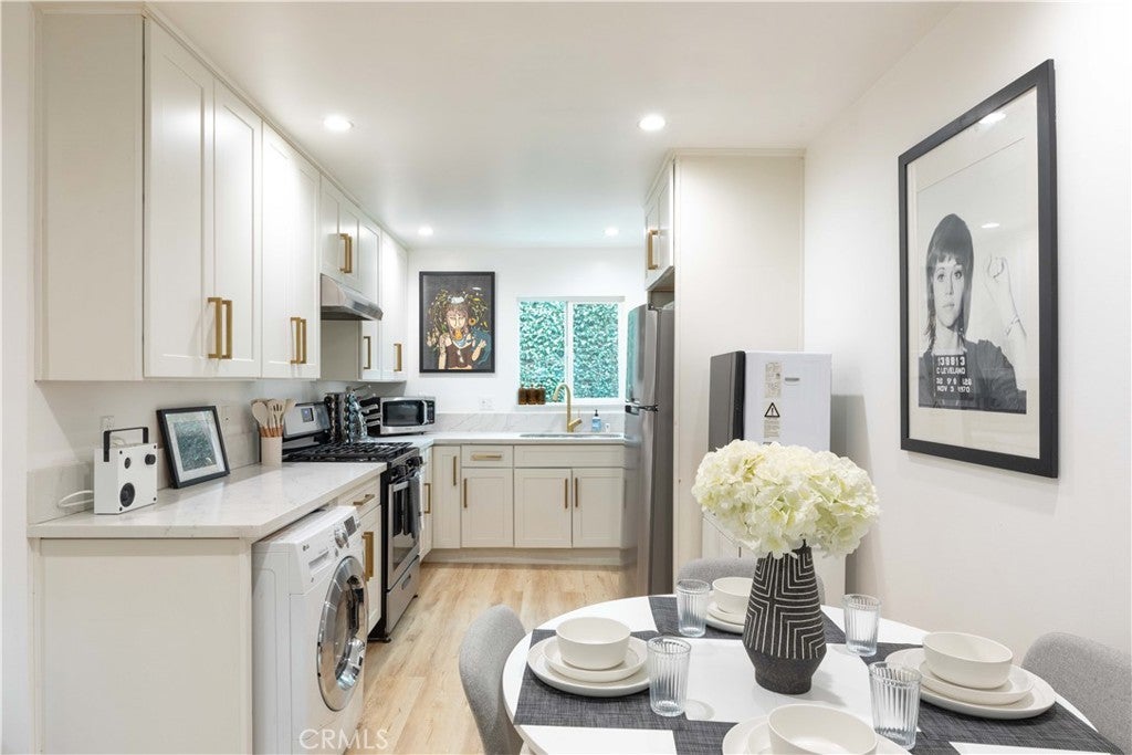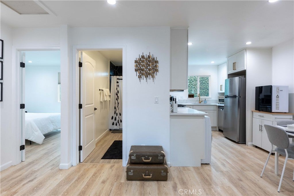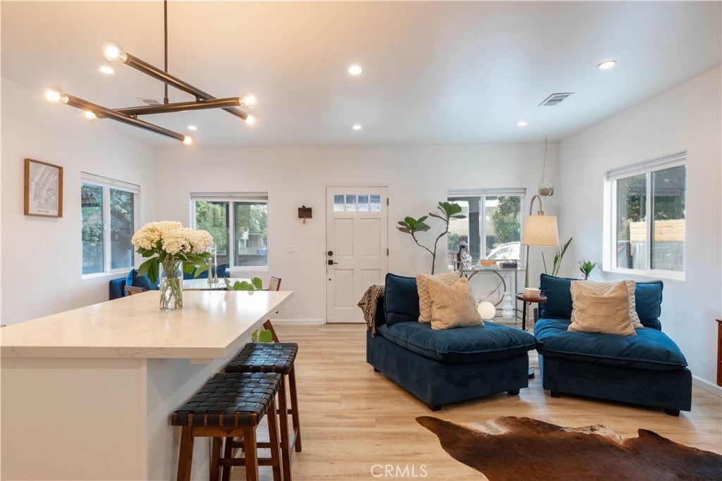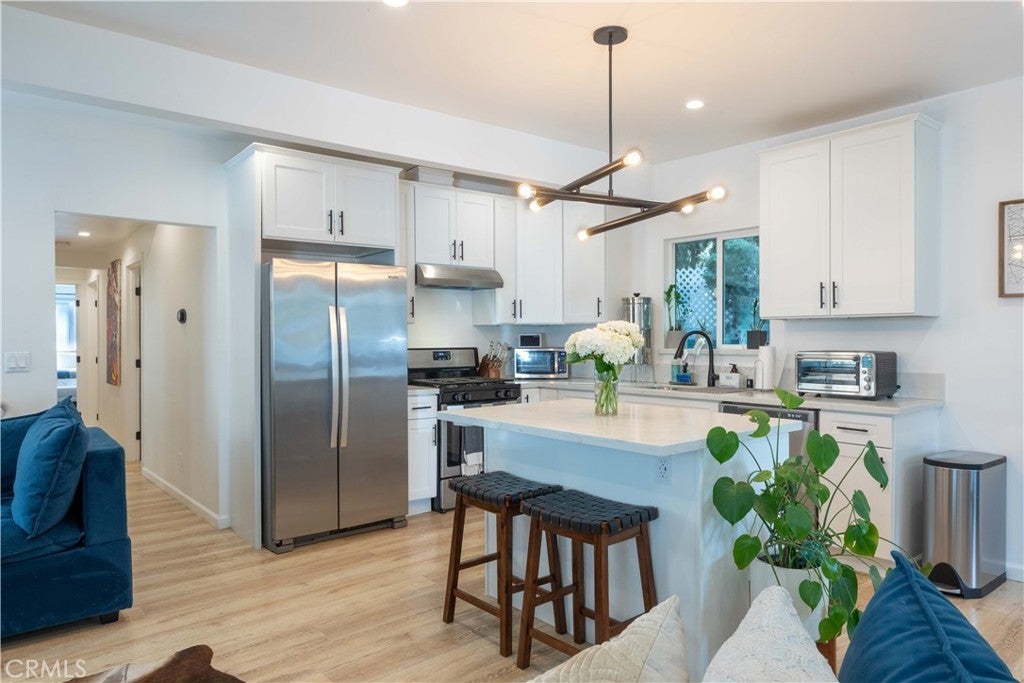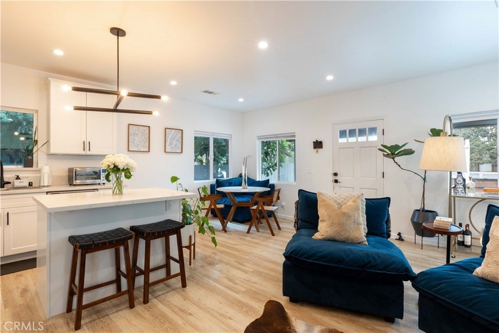 Experience Elevated Living in the Heart of the Hollywood Media District! Step into 6029 Eleanor Ave, an impeccably reimagined residence that defines modern Hollywood luxury. Tucked behind a secure gated entry for ultimate privacy, this designer home seamlessly fuses contemporary sophistication with easily accessible amenities a cosmopolitan lifestyle. Perfectly positioned in one of Hollywood’s most coveted enclaves, 6029 Eleanor Ave delivers the ultimate trifecta: an iconic location, meticulous renovation, and effortless convenience. Stroll to trendsetting cafés, creative studios, fine dining, and nightlife, all moments from your door. Enjoy proximity to the legendary Hollywood Forever Cemetery and its celebrated Cinespia movie nights framed by the iconic Hollywood Sign. Designed for discerning professionals in media, entertainment, or design, or lifestyle buyers who value elevated aesthetics and turnkey ease, this dual-residence property combines flexibility, functionality, and architectural appeal. The main residence features an open-concept layout with three spacious bedrooms and two luxurious bathrooms, while the secondary unit with its own address 6029 1/2 offers two bedrooms and one full bath ideal for guests, workspace, or income potential. Each unit includes laundry and EV charging stations, perfectly suited for modern living. Spanning approximately 1,865 sq. ft., this home exudes refined craftsmanship and curated detail at every turn. White Oak floors, recessed lighting, and black-framed dual-pane windows lend a sleek architectural edge. The chef’s kitchen is a showcase of form and function, featuring white shaker cabinetry, newer countertops, matte black fixtures, and brand-new high-end appliances. Designer bathrooms impress with statement tile work, premium vanities, and modern fixtures worthy of a boutique hotel. Every element has been thoughtfully upgraded, including newer roofing, plumbing, electrical systems, and central heating and air, all completed within the last five years for peace of mind and turnkey comfort. Outdoors, enjoy keyless coded entry, a low-maintenance gravel front yard, and a raised deck with fireplace and lounge seating, a private sanctuary for morning coffee or sunset gatherings. Gated parking with automatic fence and generous off-street for ease. 6029 Eleanor Ave isn’t just a home, it’s a statement of style, comfort, and creativity in one of Los Angeles’ most dynamic neighborhoods. Every luxury, every detail, perfected.