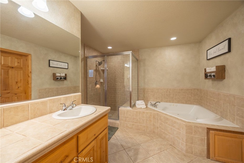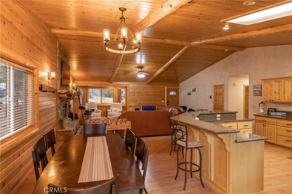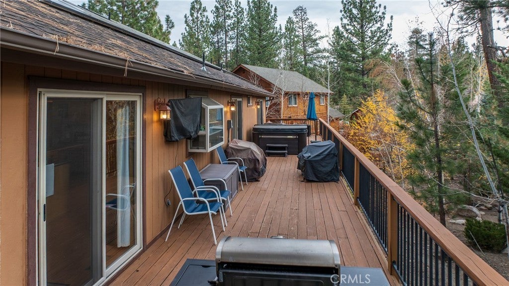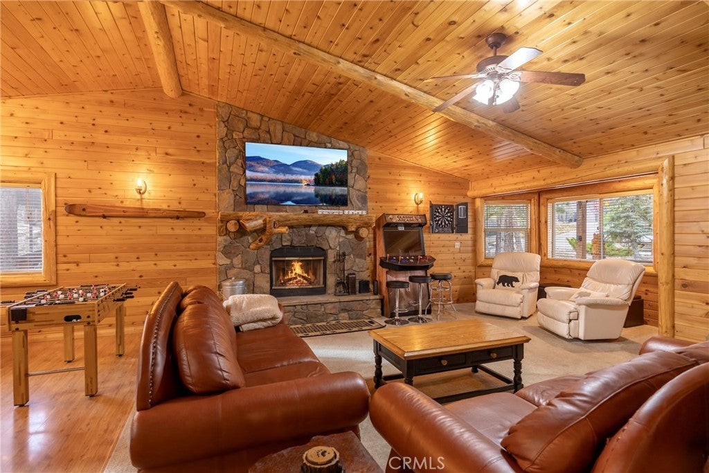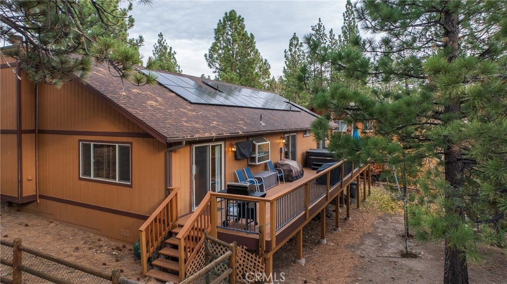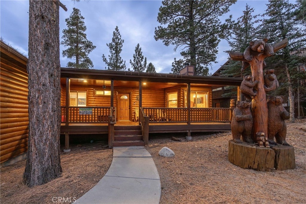 Welcome to Eagle Mountain Estates—where refined mountain living meets everyday comfort. This single-story, log-style home, built in 2003, sits on a generous 10,000+ sq ft lot and offers approx. 2,200 sq ft of thoughtfully designed living space. Soaring vaulted ceilings and warm wood textures create an inviting lodge atmosphere, while large windows bring in beautiful natural light and frame the forested surroundings. The spacious floor plan includes three en suite bedrooms, providing privacy and convenience for family and guests alike. The primary suite offers a peaceful retreat, while the additional bedrooms are perfectly suited for hosting, remote work, or extended stays—each with its own attached bathroom for added comfort. Recent upgrades elevate the home’s efficiency and livability, including a new Aspen spa, new A/C system, new whole-home humidifier, new garage door, and solar panels to help reduce utility costs year-round. Step outside and enjoy Big Bear’s four-season lifestyle from a large refinished back deck that’s perfect for entertaining, outdoor dining, or relaxing under the stars. The charming covered front porch sets the tone for slow mornings with coffee and quiet evenings taking in the mountain air. The attached two-car garage and level access make this home practical in every season. Located in one of Big Bear’s most sought-after neighborhoods, you’re close to the lake, ski slopes, hiking trails, and local conveniences while still feeling tucked away in your own retreat. A standout blend of comfort, character, and quality—this is mountain living done right.