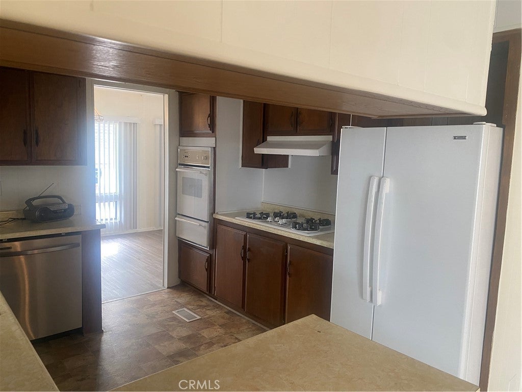 Welcome to Rancho La Paz! This home has 2-bedrooms 2-bathrooms, Featuring a spacious open floor plan, the inviting living area flows seamlessly into a well-appointed kitchen with plenty of storage, making it ideal for both everyday living and entertaining. The Master bedroom offers a bathroom, while the second bedroom provides versatility for guests or a home office. Enjoy the convenience of a separate laundry area and ample natural light throughout. Freshly painted throughout and new flooring make this home a must see. Also located in the park is a community pool and spa, along a large club house with a kitchen, fireplace and pool tables for your enjoyment. This home offers easy access to local amenities making it a wonderful place to call home! Home is to be sold as is. Space rent is $2197.00 a month. Home to be sold as is.