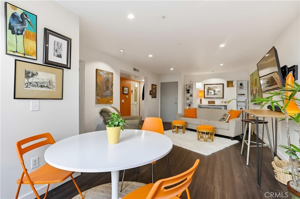 Welcome to The Lofts on 4th — East Village Living at its Best Discover your urban oasis at The Lofts on 4th, perfectly situated in the vibrant East Village. This lower-level loft offers the ideal blend of cozy comfort and modern design. Step inside to find a thoughtfully designed layout that makes smart use of space, featuring a nice sized living area with beautiful French doors that open onto a charming private patio, seamlessly blending indoor and outdoor living.Enjoy the rich, dark commercial-grade vinyl flooring throughout, complemented by recessed lighting that highlights your favorite artwork and adds a touch of sophistication. The kitchen, bedroom, and bathroom are all designed for comfort and functionality, and you’ll appreciate the convenience of a stackable washer and dryer.Just four blocks from the beach, this quiet interior unit is perfectly tucked away from the lively downtown energy; offering peace and privacy while keeping you just steps from the best restaurants, shops, and entertainment. The serene common area features palm trees and foliage in oversized planters, bringing a refreshing touch of greenery to the modern surroundings.Head up to the rooftop deck for summer barbecues and take in beautiful views that stretch for miles. From here, you’re a short stroll to the scenic shoreline bike path and minutes from Retro Row and downtown’s eclectic mix of eateries, boutiques, and nightlife.Opportunities to own in The Lofts on 4th are rare; come experience stylish coastal living where city energy meets seaside tranquility.