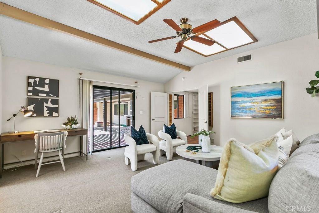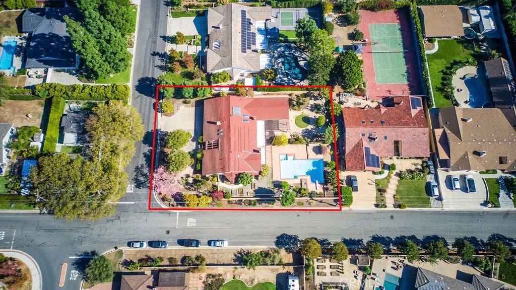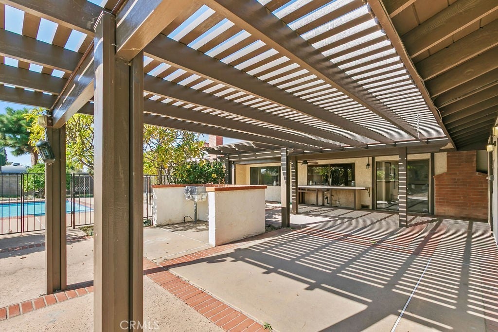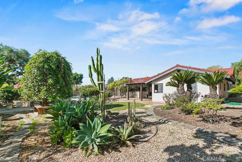 This spacious and inviting single story estate has elegant hints of Spanish hacienda architecture while still maintaining a traditional feel. With a massive Single-Story floorplan of almost 4000 square feet, this quaint Villa Park estate has all the character and charm necessary for the next owner to create their dream. Enter through a Spanish style arched entry into an open-air courtyard, giving this home a grand and inviting feel. The double entry doors are complete with functional manual privacy peepholes, wrought iron detail, and two elegant, frosted glass side lights. Cathedral ceilings in the entry give the home an open and airy ambiance. The dining room is spacious, with views of the scenic back yard. Enter the family room and one notes elegant T and G ceiling details with exposed beams and skylights. Stain grade built in entertainment center, curio cabinet, and fireplace surround gives this room a feeling of richness and warmth. Combine these features with the stone fireplace and this room conjures up feelings of cherished family holidays and nights of entertainment. Two double doors into the kitchen allow for easy entertainment access OR the opportunity for privacy and quiet from the sometimes-busy kitchen atmosphere. The kitchen is finished with coffered ceiling details, recessed cans, stainless steel appliances, sprawling kitchen peninsula, double oven, bar top seating, and functional stain grade custom cabinets with tons of storage. The formal living is finished with half height stone wall detail surrounding the simple and elegant fireplace, soaring ceilings, and spacious open feel. The primary bedroom is warm and inviting with built in entertainment center, slider to the backyard and sparkling pool, and cozy fireplace. An elegantly appointed primary bath boasts two closets, with one being a massive walk in. One of the truly unique features of this estate is the in-place potential for an attached secondary living space. With spacious secondary family room, bath, and bedroom, this wing of the home is set up perfectly for multi-generational living. Complete with a double door entry, this wing can be closed off and enjoyed as separate living, negating the costly expense of new ADU or JADU construction. Lastly, the backyard is sprawling and complete with recently replastered HUGE pool, numerous fruit trees, spacious planter boxes, aluma-wood patio cover, and tons of room for growth. Call for details!!!
