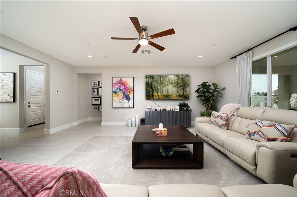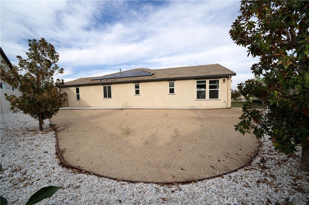 A must-see, move-in ready, almost-new 2024 home! Previously a model home, purchased in 9/2024, this property is located in the desirable Running Deer Estates community. This single-story home features an abundance of upgrades and an open-concept floor plan on an oversized lot with a beautiful view. It offers 4 bedrooms and 2.5 baths, plus a spacious indoor laundry room. The kitchen includes upgraded GE appliances such as a built-in five-burner electric cooktop, built-in oven and microwave, refrigerator, and washer/dryer. Enjoy quartz countertops with an island, soft-closing Dorian Grey maple cabinetry, and a walk-in pantry. The primary bedroom includes a large walk-in closet. The attached two-car garage features epoxy flooring, and the home is equipped with a tankless water heater and a house fan for added efficiency and lower utility costs. The family room offers a ceiling fan, built-in ceiling speakers, upgraded lighting, and many more enhancements. The backyard is perfect for entertaining with a built-in BBQ, covered patio, fruit trees, fire pit, and upgraded model landscaping. PAID-OFF SOLAR and NO HOA! The large lot also offers potential for an ADU (if permitted by the city).