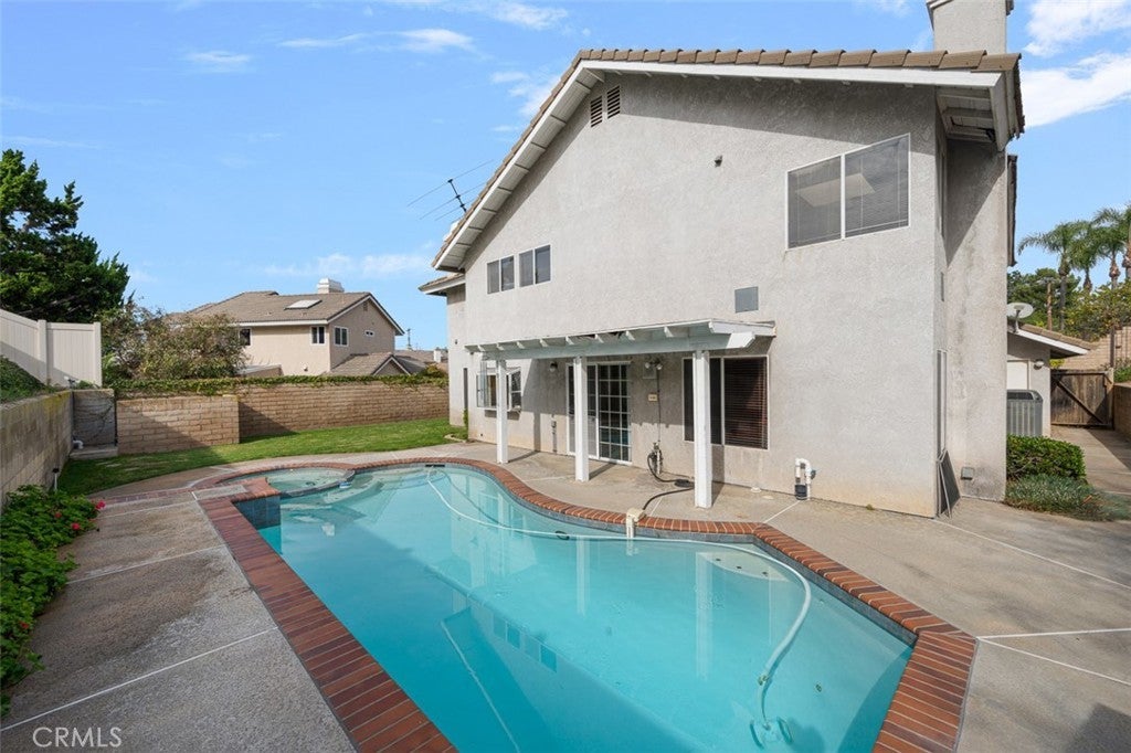 Located in a quiet enclave of Yorba Linda, this charming home offers a rare opportunity to make it your own or renovate to unlock its full potential. The welcoming layout is filled with abundant natural light, creating a space that feels both open and inviting. Step inside to find vaulted ceilings and a generously sized living and dining room. Continue through to the family room, where a beautiful brick fireplace serves as the centerpiece for relaxing evenings or gatherings with family and friends. The family room flows effortlessly into the kitchen, which overlooks the backyard complete with a pool and spa. The home also features a convenient downstairs bedroom and bathroom. Upstairs, the primary suite boasts vaulted ceilings, a walk-in closet, and a cozy sitting area with its own fireplace. Three additional bedrooms and a full bathroom complete the upper level. Situated on a flag lot, this property offers a long private driveway and a three-car garage—providing both privacy and ample parking.