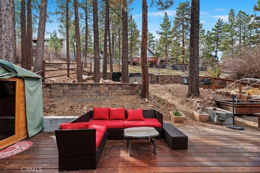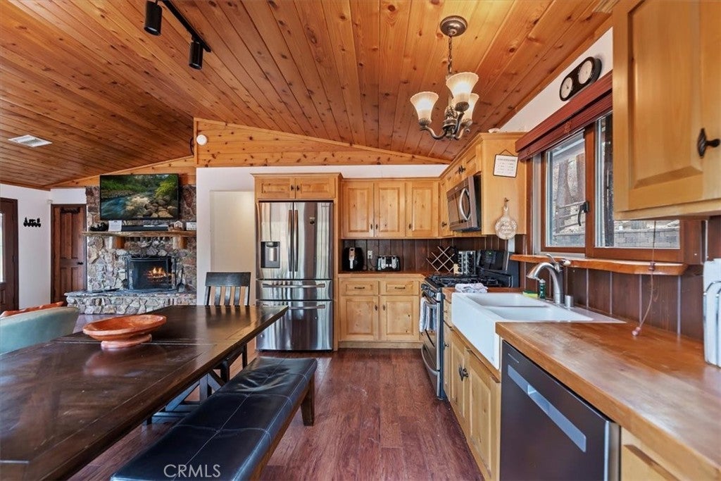This upgraded, turnkey home in Big Bear Lake has everything you’ve been searching for! With gorgeous curb appeal, a charming front yard, and plenty of parking, it’s inviting from the moment you arrive. Inside, the expansive great room boasts a fully updated kitchen, a romantic fireplace, and a spacious dining area perfect for gatherings. There are two well-appointed guest bedrooms, a newly updated hall bathroom, and a lovely master suite with its own beautiful bathroom. Features include cathedral ceilings, a two-car garage, and laundry. The backyard is a private retreat complete with a sauna, spa, decking, and two seating areas to enjoy nature year-round. This home is also a highly successful vacation rental thanks to its beautiful design and prime location.