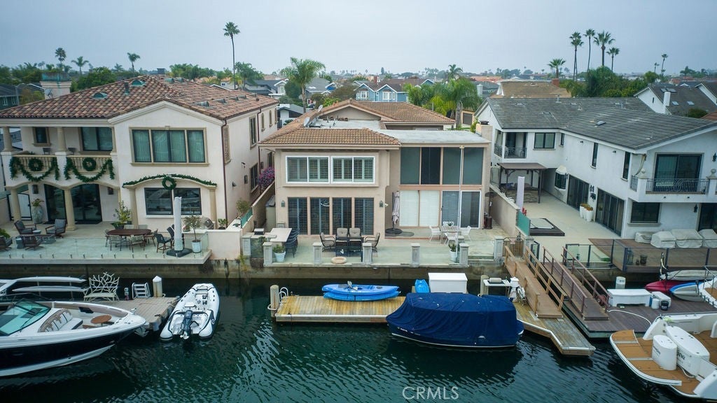 Boasting a 45 foot dock and 50 feet of waterfront, this Davenport Island gem is your next great opportunity!!! Located in the respected and posh Huntington Harbor master plan, this almost 3,600 square architectural gem blends form and function perfectly. Enter an expansive courtyard entry, complete with elegantly appointed private spa and surrounded by lush mature landscape. Mature trees and gated entry allow for peace and privacy so desired in Coastal communities! Enter through lead glass inlaid front door to a light and airy entry awash with natural light and stunning views of the beautiful backyard. The family room is an architectural dream with floor-to-ceiling window walls, elegantly finished fireplace, travertine floors and plantation shutters. The living room has rear loaded proximity to the open and spacious backyard and dock. A built-in hutch and serving center is perfect for hosting and those big entertaining nights. Designer accent walls, crown molding, travertine floors and tons of natural light give this room a warm and inviting feel. The traditional dining room boasts BIG square footage and is plenty big enough for 10 or 12 person dining set, as well as a sitting room and wet bar. The architectural glass block openings provide plenty of natural light and maintains the quiet privacy this home enjoys. A massive overflow pantry has tons of shelving storage, and secondary refrigerator. This room provides plenty of room to stock up!!! Upstairs one finds a functional layout with the primary bedroom enjoying views of the water through its expansive plantation shutter lined windows. Oversized, light and bright primary bedroom provides tons of space for king bed and sitting area, chez lounge or any other up comfort features. A built in cabinet lower allows for plenty of space for linen storage and seasonal clothing overflow. Primary bath is neatly appointed with dual vanity, spacious closets, tile floors, skylights, and privacy door on the shower and toilet area. The kitchen is spacious and well appointed with gas cooktop and vent, SS appliances, ample cabinet space, and double oven. And maybe the most important feature is the breaking waterfront views from the spacious and well maintained back yard. A 45 foot dock provides plenty of space for the boating and ocean enthusiast. Built in bbq, concrete and glass rails, and expansive dock provide tons of opportunity and summer fun. Call immediately for details!