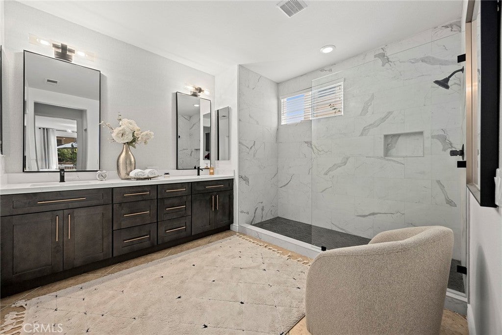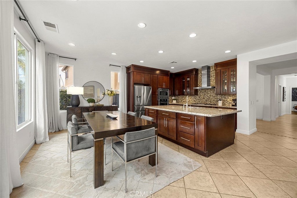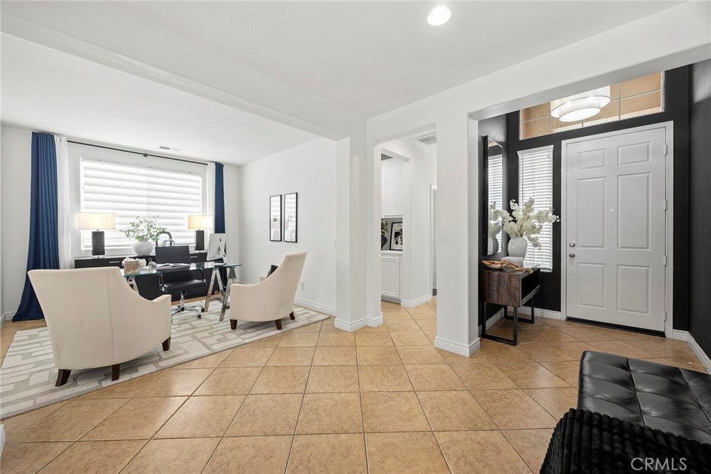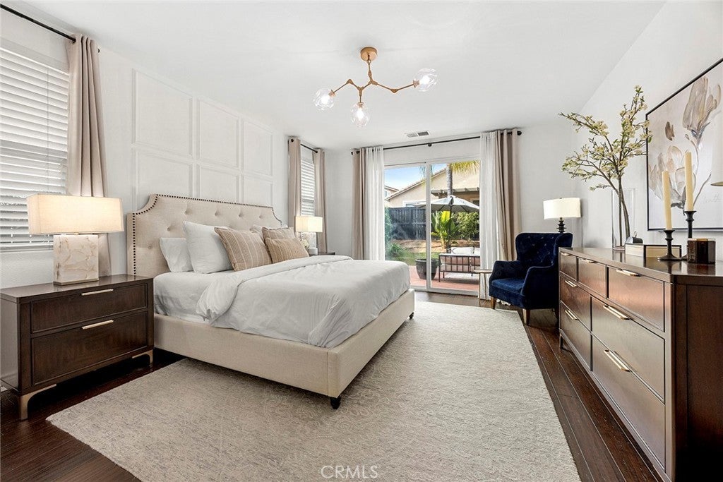 Beautiful turnkey 3-bedroom, 2-bathroom, 2,122 sqft home on a 6,098 sqft lot in the beautiful bedroom community of Winchester. Thoughtfully and professionally designed, this stunning home is truly move-in ready. As you enter through the welcoming foyer, you’re greeted by high ceilings, expansive tile flooring, recessed lighting, 6” baseboards, and dual-paned windows. Just off the entry is a spacious open room ideal for a home office or flex space. The heart of the home is the expansive living room featuring a luxurious fireplace and a slider adorned with floor-to-ceiling drapery. The chef’s kitchen is exceptional, offering an oversized granite island with cabinetry, drawers, and a sink—perfect for both everyday living and entertaining. Additional upgrades include granite countertops, glass-inlayed cabinets, stainless steel appliances, dual built-in wall oven and microwave, a Bosch custom range hood, custom tile backsplash, and under-cabinet lighting. Both the kitchen and pantry feature convenient pull-out shelving. The bright dining area offers abundant natural light from large windows and the slider, complemented by recessed lighting. The primary suite is a true retreat with its own slider providing direct access to the backyard. It features engineered hardwood flooring, decorative molding, modern lighting, and a massive walk-in closet with custom built-ins. The spa-inspired primary bathroom includes dual vanities and a luxurious walk-in shower with floor-to-ceiling marble-look porcelain tile and a frameless glass enclosure. All bedrooms are pre-wired for ceiling fans or decorative fixtures and include engineered espresso hardwood flooring. The backyard offers an expanded stamped-concrete patio, perfect for outdoor dining and relaxation, along with a convenient drip irrigation system. This home is a dream—beautifully upgraded, impeccably maintained, and sure to go quickly!