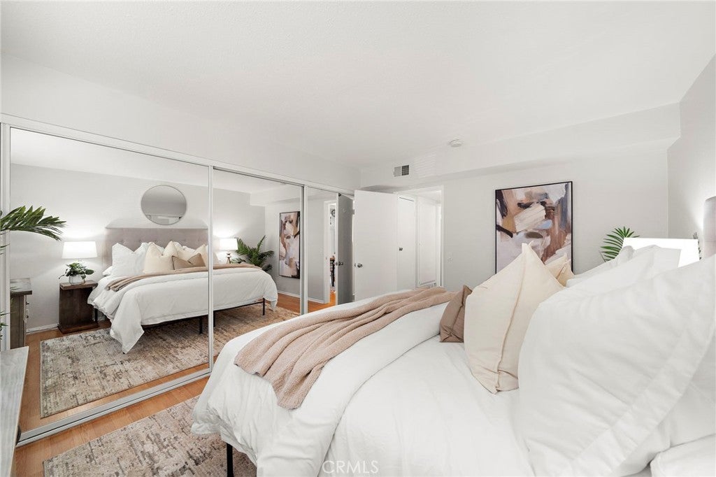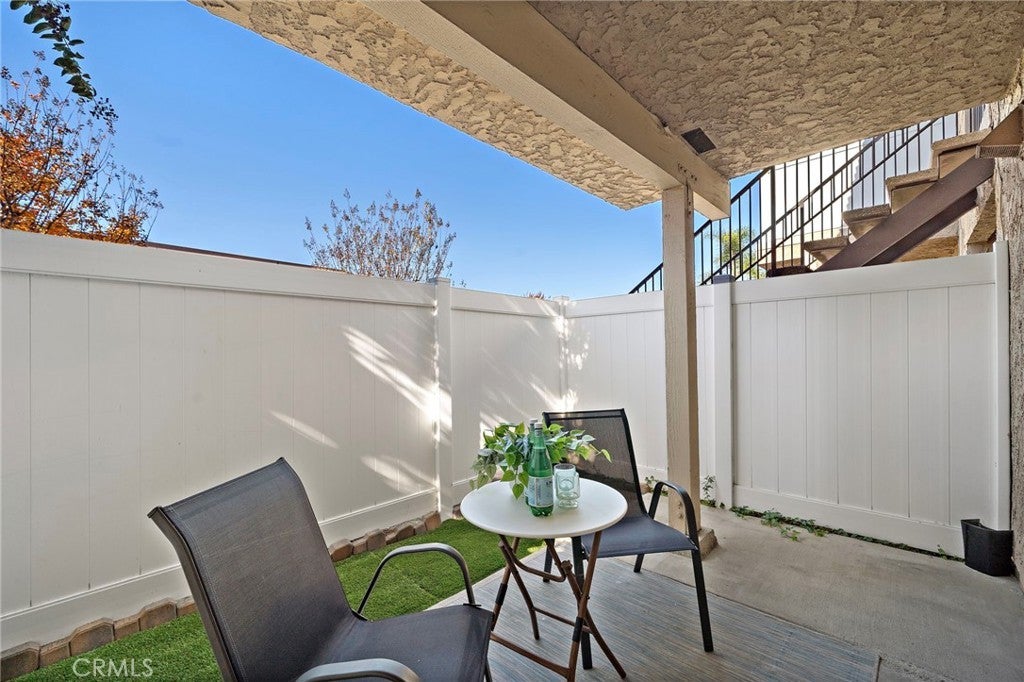 Welcome to this beautifully remodeled 1-bedroom, 1-bath, ground-level condo located in the gated Mira Vista Condominiums community in La Habra. This single-story unit features an open-concept living, updated kitchen with breakfast nook, laminate hardwood floors throughout and a reglazed tub/shower and new countertop. The spacious bedroom offers wall-to-wall mirrored closets for ample storage. Enjoy a private patio with vinyl fencing, featuring both concrete and faux grass area—perfect for relaxing outdoors and space to BBQ. Additional conveniences include central heating and air, gas range and assigned carport parking. Community amenities include pool, spa and multiple laundry facilities. HOA dues of $283/month include water, gas and trash. Located near shopping, dining, parks, and the 57 & 5 freeways within the Fullerton Joint Union High School District. Move-in ready and full of value!