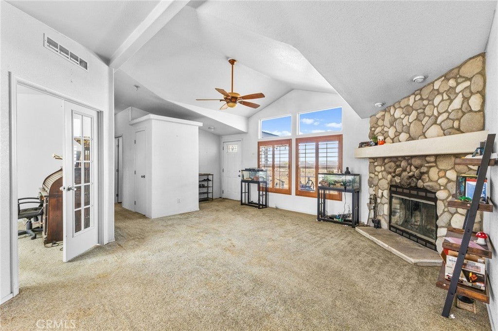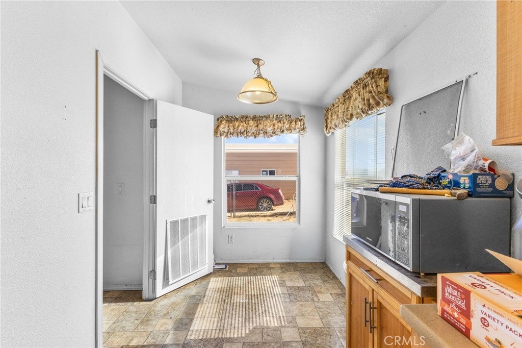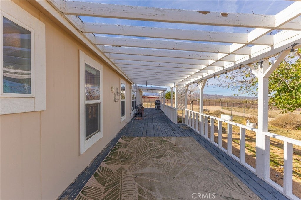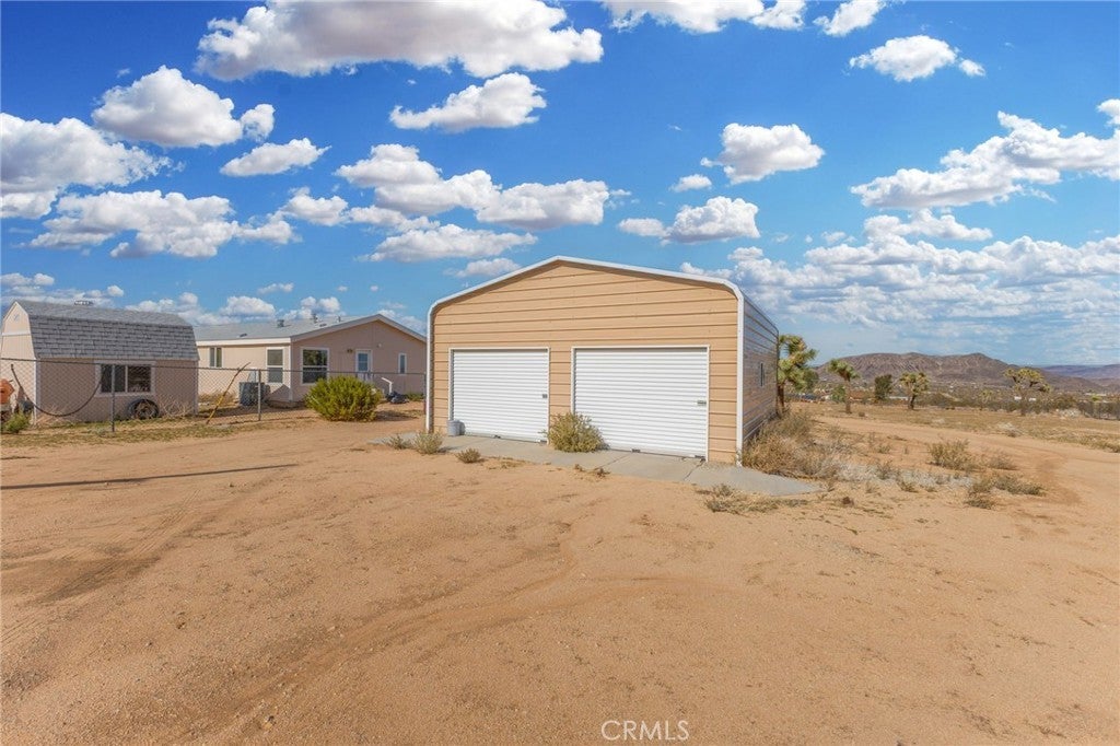 Set on more than two acres in Landers, this 3-bed, 2-bath home offers room to spread out and a layout that feels easy to live in. A wide wooden front porch with a trellis for soft shade leads you inside, where a cathedral-ceiling living room gives the space an open, airy feel. Paned-glass French doors open to a bonus room—great as a studio, playroom, office, or whatever extra space you’ve been needing. The kitchen blends a breakfast bar with a dedicated dining area, and the bedrooms are arranged with privacy in mind. The primary suite sits just off the living room and includes a walk-in closet and a spacious bathroom with both a spa tub and a separate shower. The two additional bedrooms are on the opposite side of the home, each with overhead storage above the closets and nearby access to the second bath. Outside, there’s plenty of usable land plus a mix of practical extras: a two-car garage or lockable storage structure, a shed, and a storage container—ideal for tools, gear, or project space. With its wide-open setting, great natural light, and a layout that invites both quiet living and creativity, this property gives you room to make it genuinely your own. Broker and agents do not represent or guarantee the accuracy of the square footage, income, expenses, condition, development potential, bedroom/ bathroom count, lot size or lot lines, dimensions, permitted or non-permitted spaces, or school eligibility. Buyer is advised to independently verify the accuracy of all information with appropriate professionals. There are no warranties or guarantees, buyer to rely solely on his/her/their own findings.
