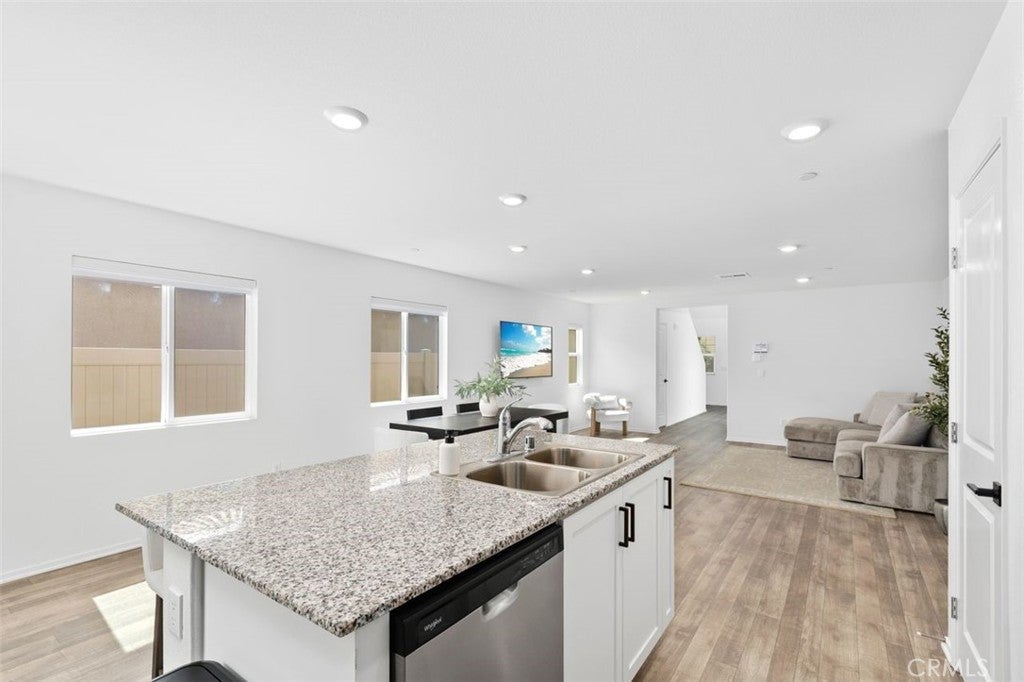 Beautiful Pradera Pointe Home! Welcome to this stunning and move-in ready two-story home, featuring five bedrooms, three bathrooms, and 2,391 sq ft of living space. The main level provides an open-concept design with a spacious great room, dining area, and chef-inspired kitchen complete with an oversized island, sleek granite countertops, stainless steel appliances, pantry closet, elegant shaker-style cabinetry, and luxury vinyl flooring. A versatile downstairs bedroom and bathroom offer the perfect retreat for guests, in-laws, or a private home office. Upstairs, the spacious primary suite showcases a large walk-in closet and spa-like ensuite bath. Three additional bedrooms, a full bathroom, a generous loft, and a laundry room with washer and dryer included complete this level. Enjoy modern convenience with smart home features, energy efficiency with solar panels, and a two-car garage with an extended tandem storage area. The beautifully landscaped backyard is perfect for entertaining or unwinding, and the manicured front yard completes the home’s standout curb appeal. The desirable Pradera Pointe community is near parks, shopping, dining, and easy freeway access. Don’t miss the opportunity to make this exceptional home yours!