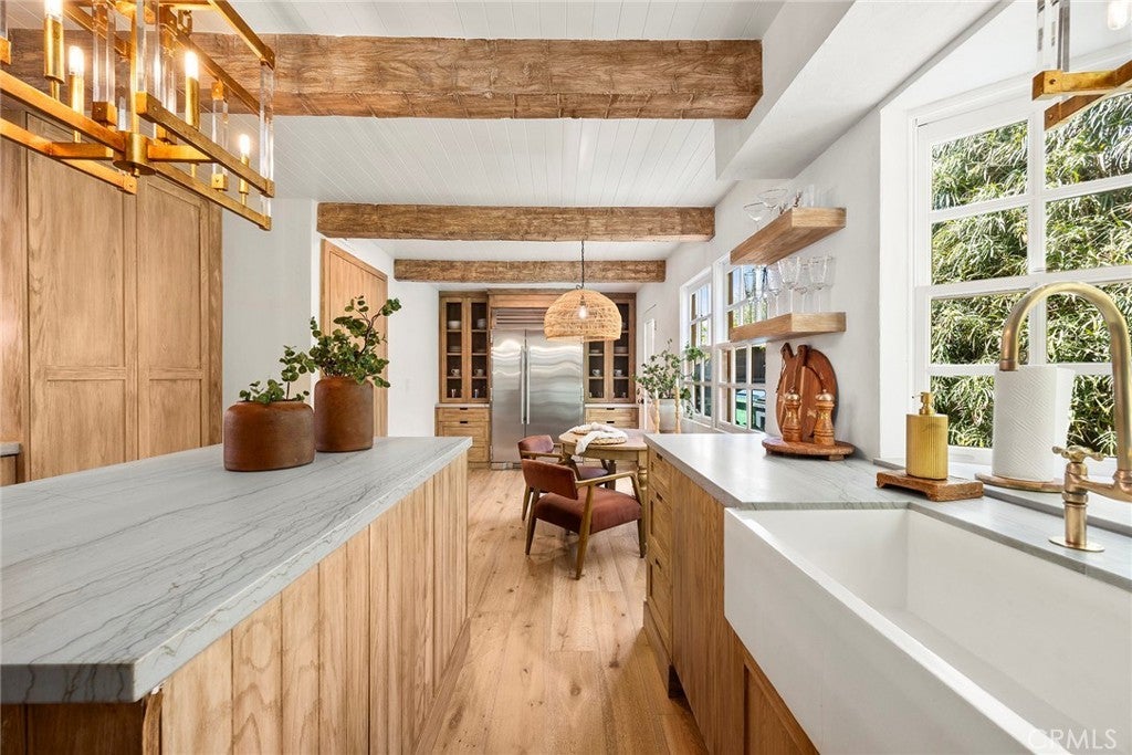 Welcome to 10162 La Sierra Place, where luxury, privacy, and California dream living collide. Tucked at the end of an exclusive cul-de-sac in the prestigious hills of Cowan Heights, this stunning single-level estate sits on over half an acre of resort-style grounds—an ultra-rare combination that instantly sets this home apart. From the moment you arrive, the property feels like a private sanctuary, surrounded by mature landscaping, beautiful elevation, and a quiet elegance that makes every day feel like a retreat. Step inside and experience the kind of space and design that buyers relentlessly search for yet seldom find. Soaring vaulted and beamed ceilings define the living spaces, creating volume, character, and effortless flow. Natural light pours through expansive windows, illuminating rich finishes and refined details at every turn. The open-concept great room blends seamlessly with an elevated dining area and a showpiece chef’s kitchen—complete with a large island, premium appliances, stone countertops, and custom soft-close cabinetry. This home is built for entertaining, celebrating, and living beautifully. The primary suite is its own private escape, offering peaceful views, abundant space, and a spa-inspired bathroom designed for pure relaxation. Three additional spacious bedrooms and an extra bonus room—perfect as an art studio, office, or creative haven—provide the flexibility today’s luxury buyers demand. Every inch of the home has been thoughtfully updated, delivering turnkey perfection without compromise. The resort-like backyard is the crown jewel: a sparkling heated pebble-finish pool, expansive flat usable grounds, and lush greenery combine to create a setting worthy of five-star vacations. Lounge poolside, dine under the stars, host unforgettable gatherings, or simply relax in total privacy—the possibilities are limitless on this rare lot. With a three-car garage and generous driveway, convenience meets luxury at every angle. Located within the award-winning Tustin Unified School District and just minutes from top dining, shopping, hiking, and the world-class amenities of Tustin, Irvine, and coastal Orange County, this home delivers an unbeatable lifestyle. 10162 La Sierra Place is more than a residence—it’s a statement, an experience, and a forever home designed to impress. Buyers will fall in love the moment they arrive.