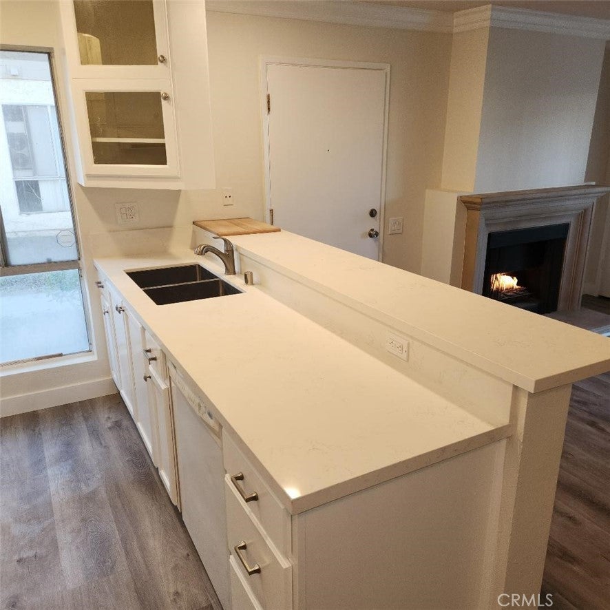 Remodeled Lakeshore Condo in the South Coast Metro Area . Features include ; New Hardwood Style Vinyl Plank Flooring , New Double Pane Windows & Slider , New Cabinetry , New Stainless Appliances , Freshly Painted , New Quartz Counters , Upper End Location , Living Room has a gas Fireplace , Central AC & Heat , Balcony , Breakfast Bar , Gas / Water / Trash / Sewer Paid , One Carport / 2 nd car open unassigned space , Lakeshore community offers a pool / spa / clubhouse / lake / tennis courts / laundry rooms .