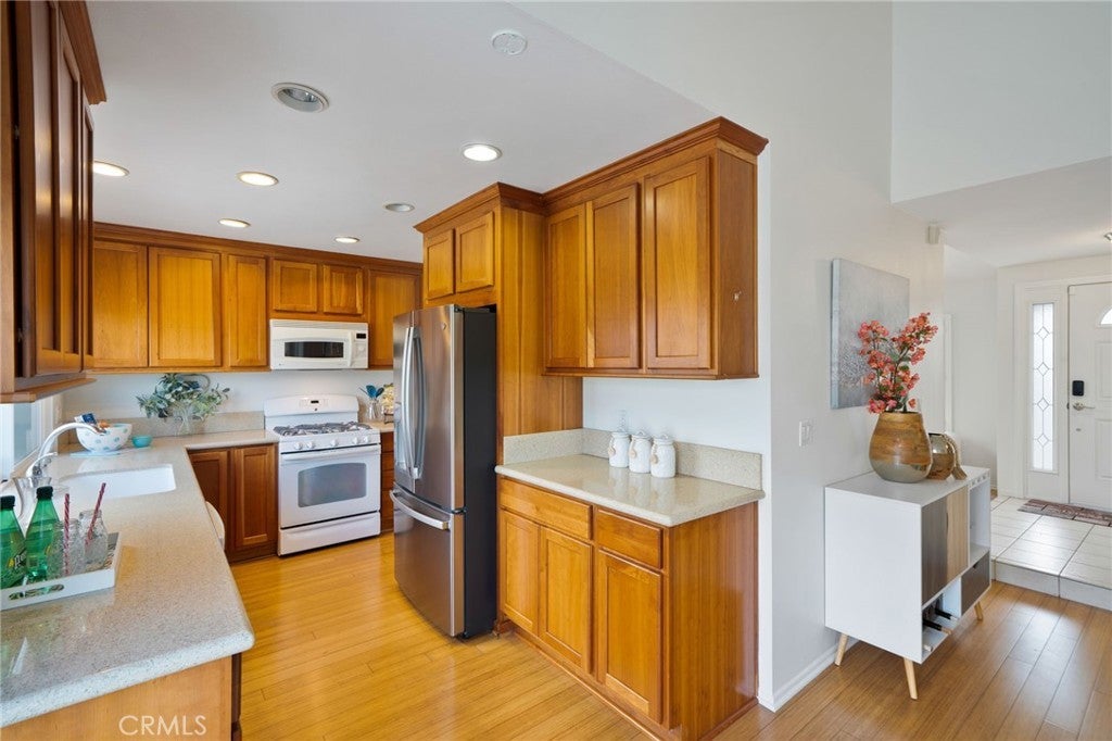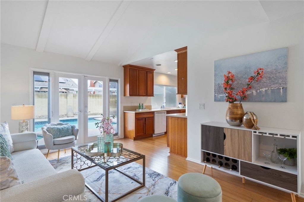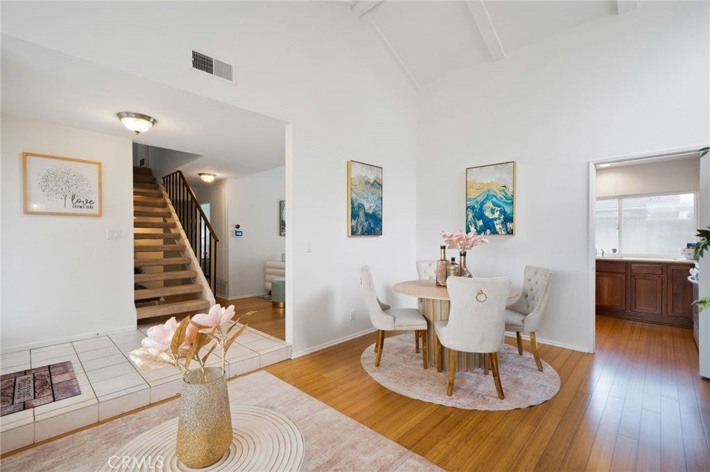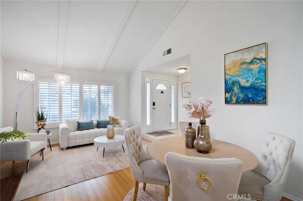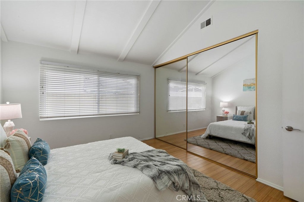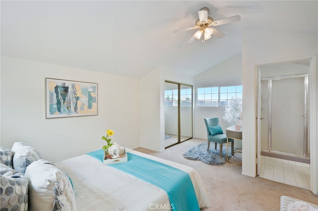 Ideal Interior Street Location: Beautiful two-story home offering 3 bedrooms and 3 bathrooms with showers. The floor plan is designed with a primary suite on each level. This spacious 1,460 square foot features an open and bright floor plan designed with vaulted ceilings on both levels, and hardwood flooring throughout the main level. Upon entry, you’re welcomed by a formal foyer leading to the formal living and dining rooms, both enhanced by high-volume ceilings, a cozy wood-burning fireplace and plantation shutters. The separate family room is also highlighted with vaulted ceilings and upgraded French doors to the backyard. The bright kitchen includes upgraded cabinetry and countertops, recessed lighting and beautiful views of the relaxing pool and spa. Two of the bedrooms are on the main level, including a primary suite with an en-suite bath. The additional primary suite with private bath is on the second level. This suite is highlighted with vaulted ceilings. Additional highlights includes soft water and solar panels with a 25-year panel warranty and lifetime installation warranty – and fully owned. Enjoy a spacious backyard with a refreshing pool and spa, plus fresh landscaping in both the front and back yards. This excellent location is just a short walk to Central Park - one of Orange County’s gems - featuring basketball courts, tennis courts, a softball field, playground, and gazebo. Highly desirable La Palma School District includes access to nationally recognized Oxford Academy.