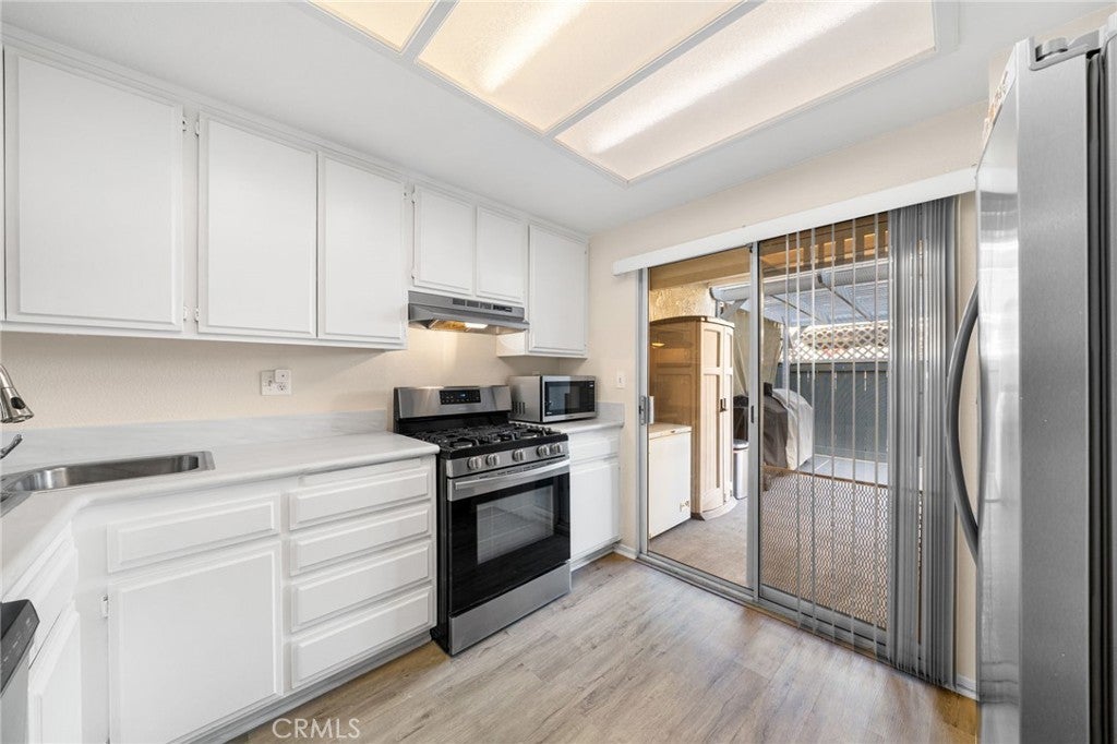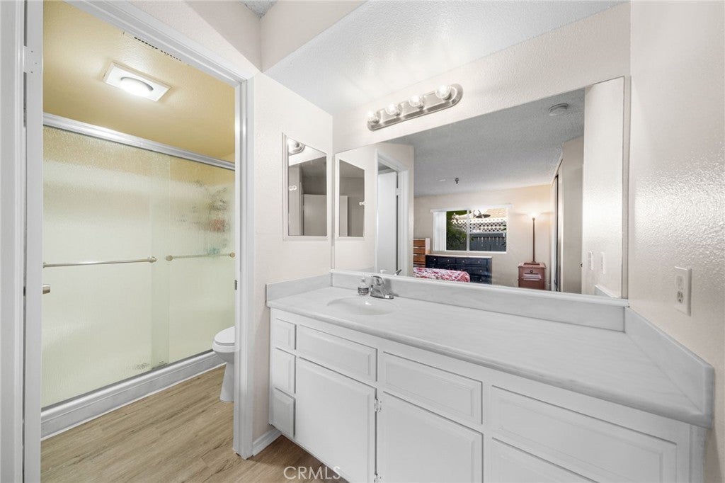 Welcome to 701 Hayward St. #C, a stunning move-in ready lower level condo with CENTRAL AIR! Located in the quieter back part of the neighborhood; this turn-key home features 2 spacious bedrooms and 2 full bathrooms, offering modern comfort and style. The 2 car garage has ample overhead storage space plus plenty of room for a workbench. Enjoy vinyl plank flooring throughout the home, along with a backyard patio including anti-slip coating and fence top privacy screening. The inviting living and dining areas are separated by attractive see through partition shelving, perfect for entertaining friends and family. Both bedrooms are generously sized, including a primary suite with ample closet space. The well maintained community offers great amenities, including a spa. Conveniently located near major freeways, shopping, dining, and entertainment, this home has it all!