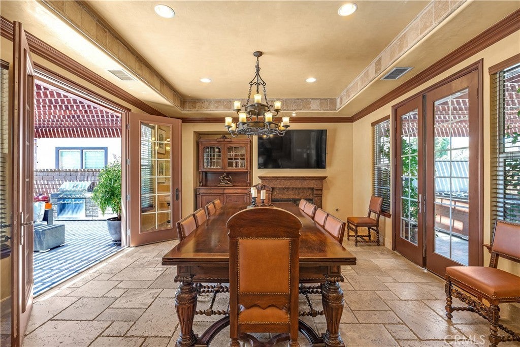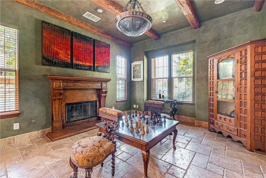 Priced to sell at $200K below original asking price. Recent higher appraisal adds instant buyer equity! Step into timeless elegance and modern comfort in this one-of-a-kind Tuscan-style estate. Located in the exclusive residences of "The Retreat" North Santa Ana's Floral Park area, where sophisticated living meets artisan craftsmanship. With 5 spacious bedrooms, all with custom closet-built ins, 4.5 bathrooms, a dedicated den/office, and private in-law quarters, this 4,566 sq ft residence is a showcase of warmth, beauty, and luxurious detail. The home welcomes you with custom onyx travertine flooring, rich Venetian plaster walls, and artisan touches throughout, including a Tiffany-style chandelier in the cozy formal living room, adding just the right touch of old-world charm and elegance. Four fireplaces, two of them dual gas and wood-burning that create a cozy ambiance throughout the main level, perfect for relaxing or entertaining. The heart of the home is the gourmet chef’s kitchen, featuring a brand-new $40,000 Thermador appliance suite, stunning granite countertops, and an airy, open layout that flows effortlessly into the family and dining spaces. French double doors invite you outdoors to an entertainer’s dream yard. The primary suite is a private sanctuary, starting with a separate sitting room with a fireplace, then stepping up into a grand 16’ x 20’ master bedroom private retreat with vaulted wood beam ceilings. The warm wood details continue throughout the home, adding a rustic elegance that echoes the best of Tuscan architecture. Outside, you’ll find a professionally designed $250,000 retreat, offering a perfect balance of serenity and style: Over 1,800 sq ft of wrap around covered patio space for year-round enjoyment, 10-person above-ground spa nestled in a private courtyard, 10-person Finnish cedar wet sauna on a custom-built deck, 6-ft hand-hammered copper fire pit filled with turquoise fire glass for unforgettable evenings, lush flowering gardens with roses and other seasonal blooms, adding color and fragrance throughout the year. This home offers the perfect setting for multigenerational living, stylish entertaining, or peaceful, everyday luxury, all within a beautifully curated and thoughtfully designed residence.