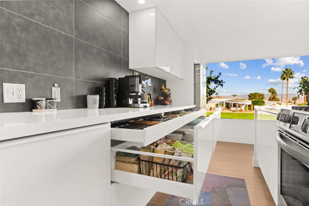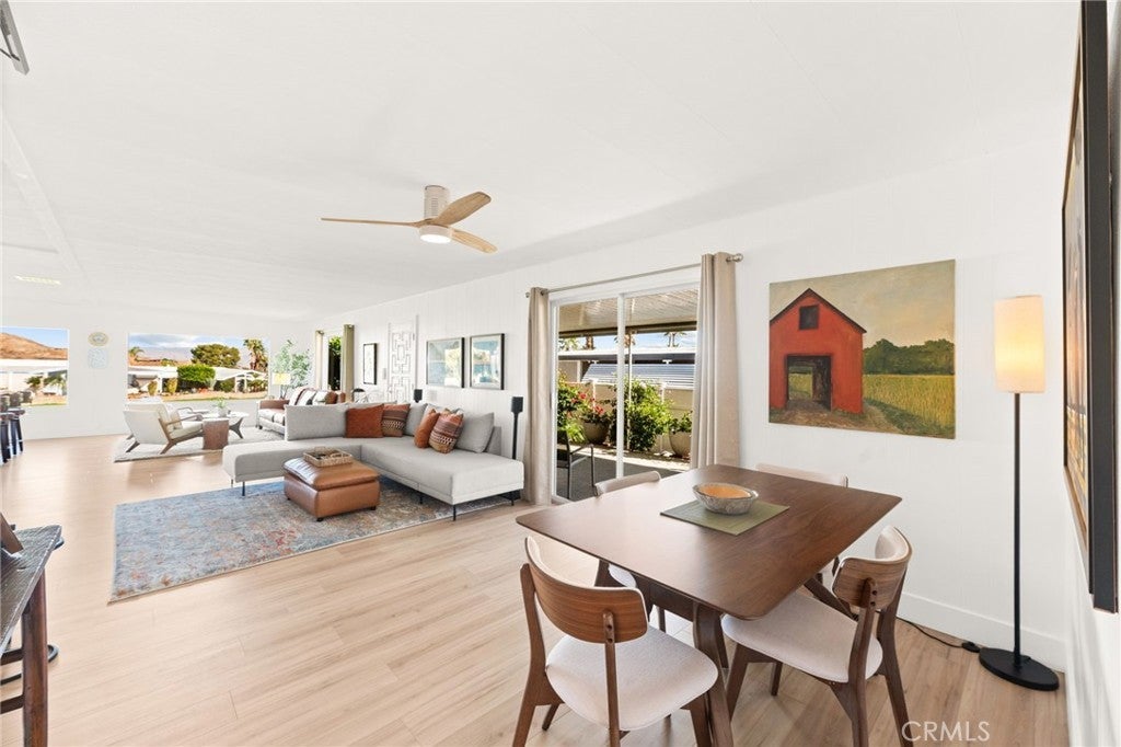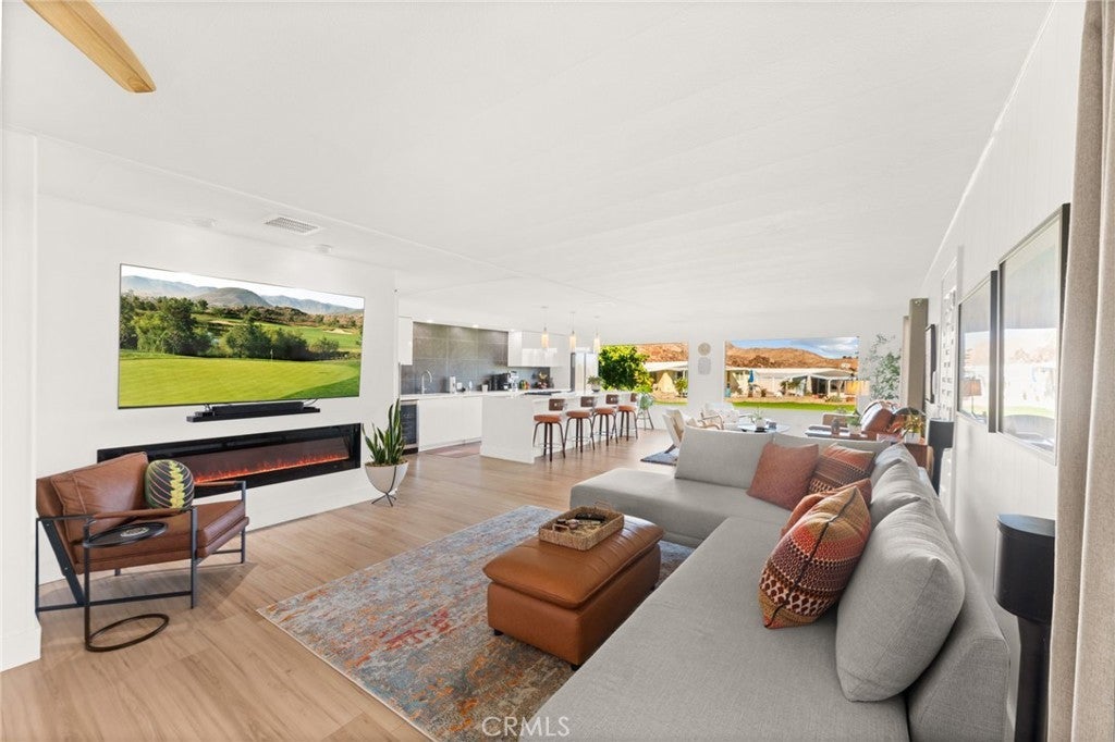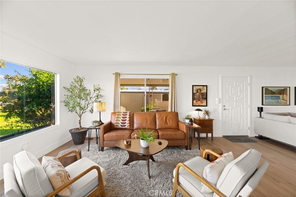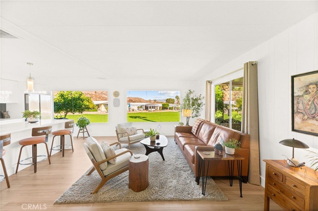 Welcome to this beautifully remodeled turn-key 2 bedroom 2 bath, 1440 sq ft open floor plan home in a 55+ community it offers the perfect blend of sophisticated comfort and style with the convenience of living just 2 miles from the iconic El Paseo Blvd where you can experience world-class shopping, dining and entertainment. Featuring stunning views of the San Jacinto mountains and Cahuila hills, two sides of this private home sit on the beautiful greenbelt meaning you only have neighbors on one side. The open floor plan and remodeled kitchen are perfect for entertaining. Located across the street from the heated community pool, clubhouse and Spa, guest parking is never an issue. In addition this home features a two year old roof, owned solar and is a short drive to premier golf courses, the living desert, College of the Desert, top-tier tennis events, and concerts. Whether you are looking for a primary residence or a part-time get-away look no further! Park approval is required prior to close of escrow.