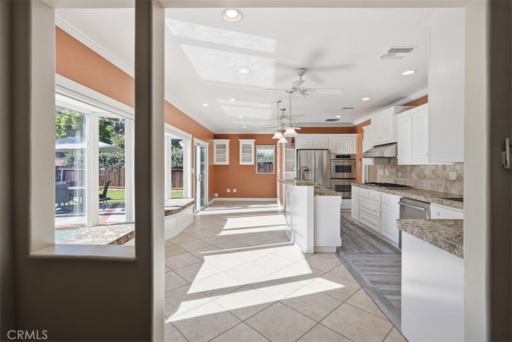 Welcome to 17922 Romelle Avenue — a warm, inviting North Tustin pool home where comfort, charm, and lifestyle all come together. Set in one of the most desirable neighborhoods in North Tustin, this 4-bedroom, 3-bath home + office offers over 2,400 sq ft of thoughtfully designed living space on an expansive 11,600 sq ft lot — perfect for gatherings, celebrations, and creating long-lasting memories. Step inside to soaring ceilings, hardwood floors, a marble fireplace, and natural light pouring in from the skylight above. The entertainer’s kitchen features custom cabinetry, granite countertops, stainless steel appliances, a double oven, walk-in pantry, large island, and oversized windows with views of your private backyard oasis. It’s the ideal setting for family dinners, weekend hosting, and everyday living. The primary suite is spacious and peaceful with a large walk-in closet, while the additional bedrooms offer flexibility for family, guests, or work-from-home needs. One bedroom is privately situated with its own full bathroom—perfect for in-laws, guests, or multigenerational living. Additional conveniences include indoor laundry with sink, crown molding, whole-house water softener, built-in garage cabinets, artificial turf, and ceiling fans in every room. Outside, the backyard shines with a sparkling pool, built-in BBQ, generous patio space, and room to entertain on any scale. Whether you're hosting summer pool parties or enjoying quiet evenings under the stars, this space is designed for California living. Families will appreciate access to some of the area’s highly respected schools: La Veta Elementary (known for its standout GATE program), Santiago Middle School (Orange County’s first charter middle school focused on leadership and exploration), and El Modena High School (offering AP/Honors programs and a unique on-campus Nature Center) And just minutes away, you have one of the crown jewels of Southern California education OCSA — the Orange County School of the Arts. Then minutes from the charming restaurants and boutiques of Old Town Tustin, parks, trails, and everyday conveniences — plus easy access to the best of the Orange County lifestyle — this is the home where your next chapter can truly begin.
