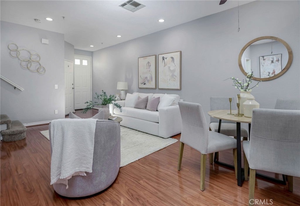 Welcome to this beautiful 3 bedroom 2.5 bath home in the highly sought after gated community of Altura. Walk into this bright, spacious, upgraded home with beautiful wood flooring, custom kitchen cabinets with granite counters. A convenient bar area overlooks the kitchen. The open concept floorplan also offers a nice sized living room and dining area and boasts a lovely fireplace/TV area, perfect for evening relaxation. Downstairs also features a half bath for convenience. Right outside the dining area is the back patio, perfect for entertaining and relaxing. No neighbors behind so you have absolute privacy. Upstairs you will find two very spacious en-suite bedrooms with a third room that can be used as an office, babies room or gym. The single attached garage has laundry hook ups for washer and dryer. Additional parking passes are available. This community offers resort like amenities such as pool, spa and fitness center and beautifully landscaped common areas. Ideally situated near shopping, top rated schools and convenient access to freeways, this property is a perfect location for modern living.