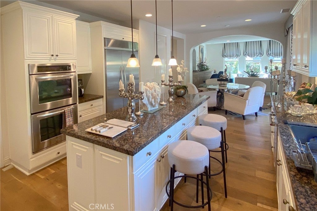 This exquisite home is offered fully furnished with curated designer furniture throughout, creating a turnkey luxury living experience. Beautifully remodeled home located in the prestigious gated community of Pacifica San Juan. This elegantly updated 2-story residence offers 5 bedrooms, 5 bathrooms, a spacious bonus room and a 3-car garage. The formal living and dining areas showcase refined details and open to a private patio with a charming fountain. The light-filled family room features a cozy fireplace and views of the resort-style backyard. The gourmet kitchen boasts a large center island, 8-burner cooktop, built-in refrigerator, granite counters, walk-in pantry, and a bright breakfast nook. A newly added downstairs room provides a versatile space ideal for a home office or den. The luxurious primary suite offers sweeping hillside views, a generous walk-in closet, soaking tub, walk-in shower, and dual sinks. Secondary bedrooms are spacious and well-appointed. The backyard is an entertainer’s dream, featuring a saltwater pool and spa, grotto, waterfall, built-in BBQ, fire pit and custom lighting. Community amenities include pools, spa, gym, BBQ area, and cabanas. Conveniently located near beaches, shopping, dining and the award-winning St. Margaret’s Episcopal School.