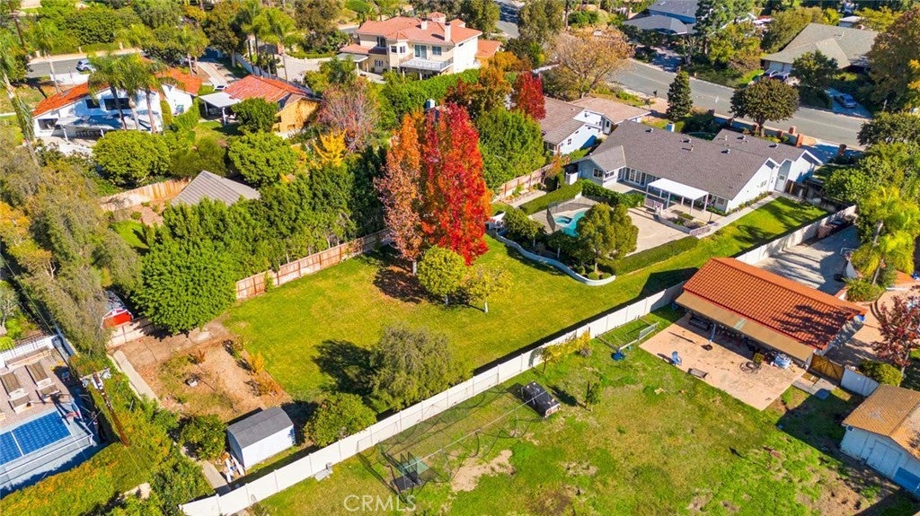 This distinguished single-story residence at 9531 Lemon Street epitomizes Villa Park living at its finest. Situated in the prestigious northeast quadrant on an expansive 26,095-square-foot parcel, the property presents exceptional opportunities for enhancement, whether one envisions a sports court or an accessory dwelling unit. The thoughtfully designed floor plan encompasses three bedrooms and a dedicated office—readily convertible to a fourth bedroom—all on a single level. Architectural details include a brick-capped perimeter wall, double-door entry with decorative glazing, and an abundance of natural light throughout the interconnected living and dining spaces. The well-appointed kitchen features professional-grade appliances and seamless indoor-outdoor connectivity. The primary suite provides a private sanctuary with direct patio access, generous walk-in closet, and luxuriously appointed en-suite bath complete with soaking tub and rain shower. The meticulously maintained grounds showcase a resort-style pool and spa within secure fencing, fruit orchard complemented by mature landscaping and substantial undeveloped space. A three-car garage with electric door openers completes this exceptional offering in one of Orange County's most coveted communities.