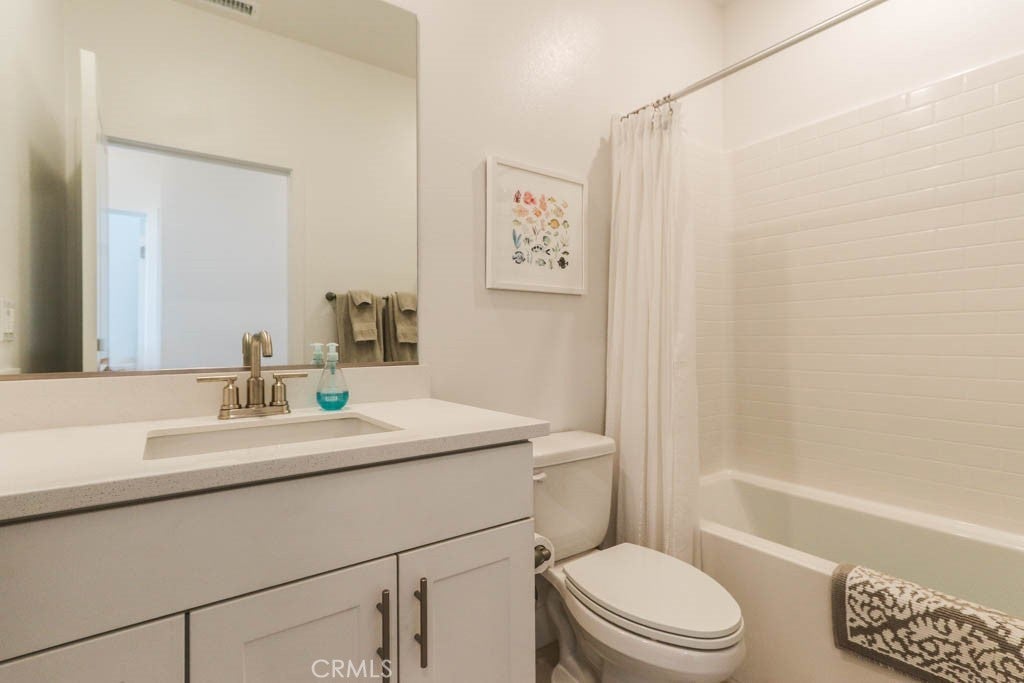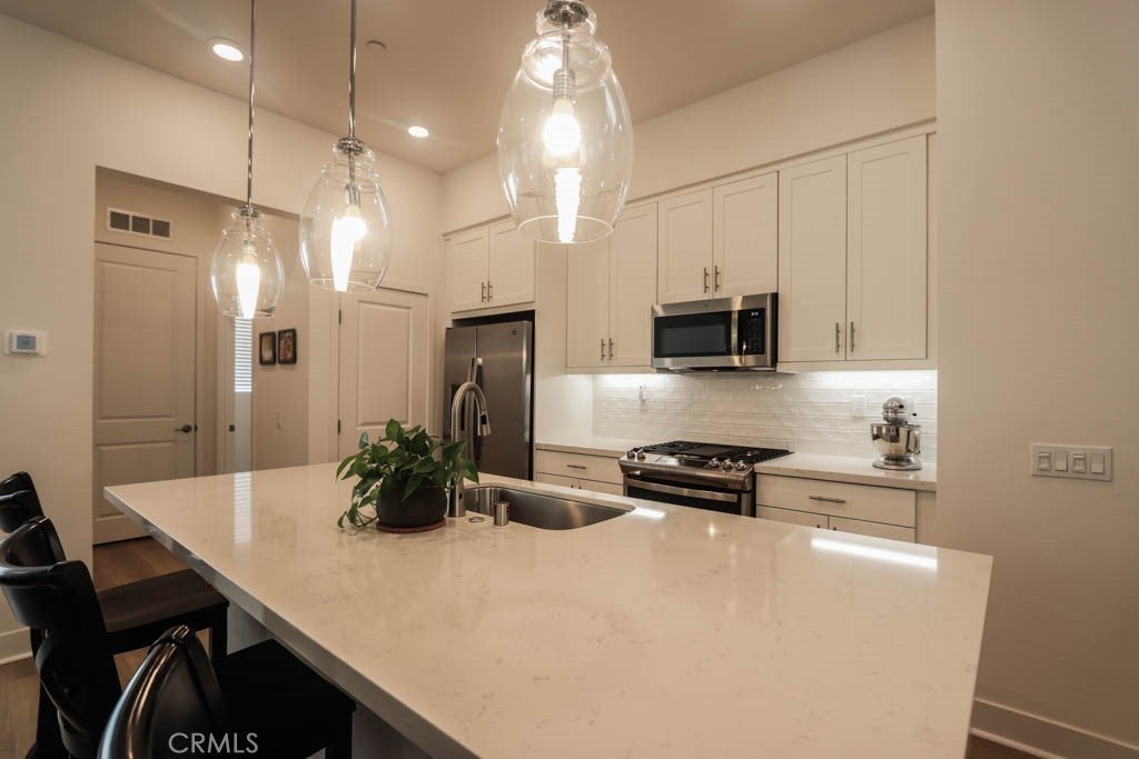 This beautiful Harbor Pointe at Ponte Vista tri-level home offers 3 bedrooms, 4 bathrooms, and a flexible floor plan designed for modern living. The entry-level features a versatile flex space with a private bath—perfect for a home office, gym, or guest suite. Upstairs, the open-concept great room, dining area, and gourmet kitchen flow together seamlessly. Enjoy stainless steel appliances, upscale countertops, ample cabinet space, and an oversized island, ideal for everyday living and entertaining. A bonus nook adds even more versatility for a workspace or play area. The primary suite is a luxurious retreat with a walk-in closet, dual vanities, and a spacious walk-in shower. Two additional bedrooms share a full bath, providing plenty of room for family or guests. Additional highlights include high ceilings, in-home laundry, leased solar system, and generous storage throughout. Located in the gated master-planned community of Ponte Vista, residents enjoy resort-style amenities: pool, recreation center, fitness room, parks, BBQ areas, fire pit, and scenic walking trails. With low HOA dues and easy access to beaches, shopping, dining, and major freeways, this is coastal California living at its best.