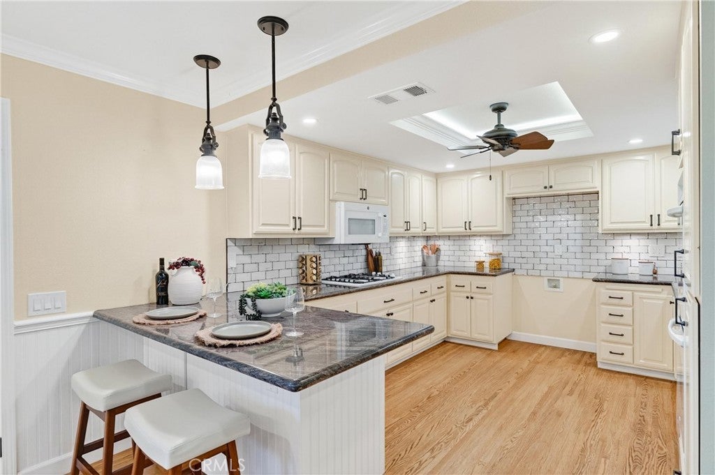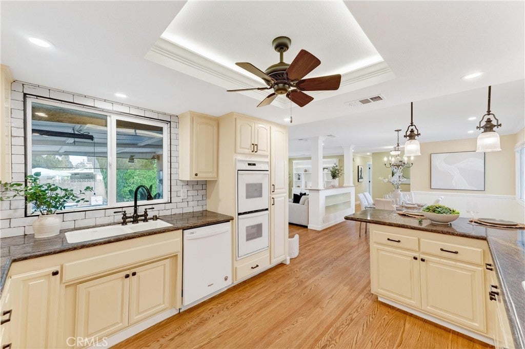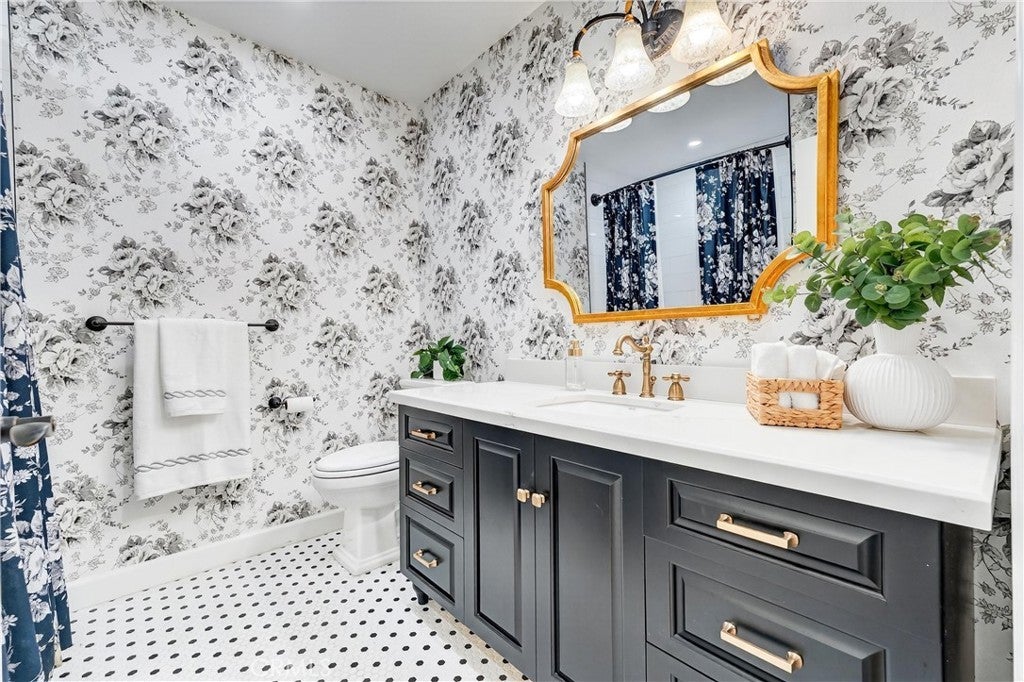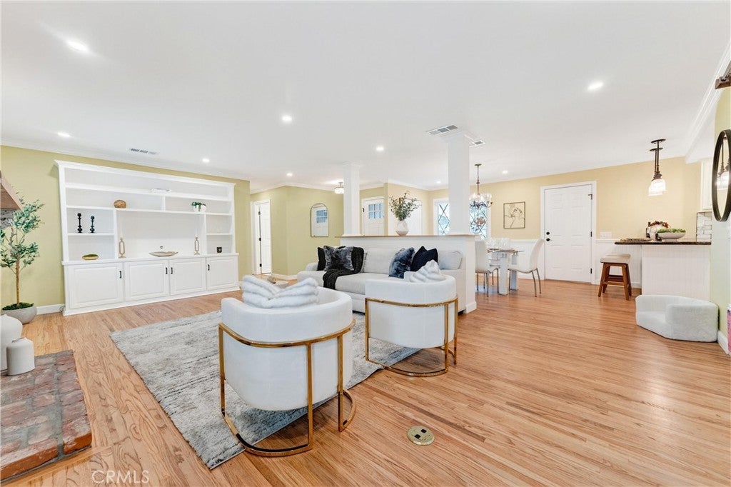 Welcome Home to this beautifully remodeled TURN KEY home in north Orange! This 3-bedroom, 2- full bath home boasts oak hardwood floors throughout, open floorplan living space, and a spacious back yard with sparkling swimming pool just waiting for summertime parties! This home’s interior is all on one level with no steps. The updated kitchen features a dual oven and gas cooktop, as well as ample cabinet and pantry storage including pull-out shelving. Bright recessed ceiling lighting and under-cabinet accent lighting show off the “antiqued” subway tiles and dark quartz countertops. The refrigerator nook is directly plumbed. The breakfast bar separates the kitchen from the adjacent dining room, which has ample space for a large dining table as well as built-in shelving to show off your favorite cookbooks or dishes. The spacious living area features a large custom-built entertainment unit as well as convenient in-floor power outlets. The cozy fireplace has been maintained with its original brick charm, updated with a modern mantle. Plantation-style shutters cover the large, sunny windows that overlook the pool and back yard. A large sliding door opens to the spacious covered patio and then out to the pool deck, with plenty of space for lounging in the sun or splashing in the pool. Perfect for entertaining, or just enjoying a beautiful Southern California afternoon all year long! The primary bedroom features two reach-in closets with cedarwood flooring, and the spa-like primary ensuite has been beautifully updated with modern plumbing fixtures. The walk-in shower features a beautiful carrara tile surround and shower seat. Both large secondary bedrooms have been updated with new windows, mirrored sliding closet doors, and closet cedarwood flooring. The guest bathroom feels simply luxurious with updated vanity, bathtub, and fixtures, modern floral wallpaper with reverse-matching custom shower curtain, and penny-tile flooring. The oversized 2-car garage has an updated garage door and new motor. There is ample storage available with the garage cabinet system, and space for a workbench adjacent to the laundry hookups and utility sink. The 2021 remodel project for this home included interior electrical rewiring, attic ductwork, oak flooring, new dual-pane windows, and a new water heater in addition to what is noted above. Freeway close to 57, 55, and 91, and minutes away from Chapman U, CSUF, Orange Circle, and both Anaheim Stadium and Honda Center.