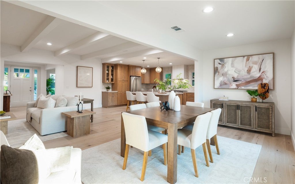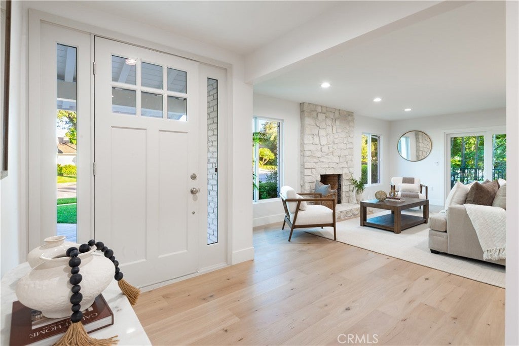 PARK ESTATES SINGLE LEVEL POOL HOME | Completely transformed with today's most desired features and finishes, this stunning residence embodies the warmth and ease of an organic California ranch style home where curated design, natural materials, and thoughtful craftsmanship come together in perfect harmony. Every space has been thoughtfully redesigned with a focus on effortless indoor-outdoor living. Featuring all new engineered oak flooring and a calm, cohesive palette that guides you through beautifully redefined spaces. The formal living room off the entry features a fireplace and sliders leading to a serene private patio, one of several outdoor spaces throughout the property. The gorgeous open concept kitchen features a large island with Taj Mahal quartzite, custom backsplash, generous use of cabinetry, all-new appliances, and an inviting flow into the family room. A walk-in butler’s pantry with beverage service, additional cabinetry, and wine fridge elevates both daily living and effortless entertaining. A well-placed powder room off the kitchen also connects directly to the pool and is ideal for enjoying sunny days outside. The family room centers around a cozy fireplace and opens to the adjacent dining room. All the bedrooms and bathrooms have been fully upgraded with designer-selected tilework, fixtures, and finishes. The separate bedroom wing boasts three bedrooms and two additional bathrooms. The primary suite off the pool features backyard vistas, a walk-in closet and a stunning spa-inspired bath. The exterior is just as thoughtfully renewed...the pool has been recently plastered with new tile accents as well as multiple patio areas creating endless opportunities for gatherings, relaxation, and outdoor living at its finest. There is a long, elegant driveway with an electronic gate which leads to the finished two-car garage. Additional upgrades include tankless water heater, central air, paid off solar panels, new doors, new windows, and sliders. Lovely curb appeal with all new sod, landscaping, and lighting. Residents enjoy the gorgeous tree-lined streets, wide lots, nearby park, excellent schools, and a tight-knit community. Set on a prime lot in one of the neighborhood’s most desirable locations, this home offers the perfect blend of elevated design and Park Estates living.
