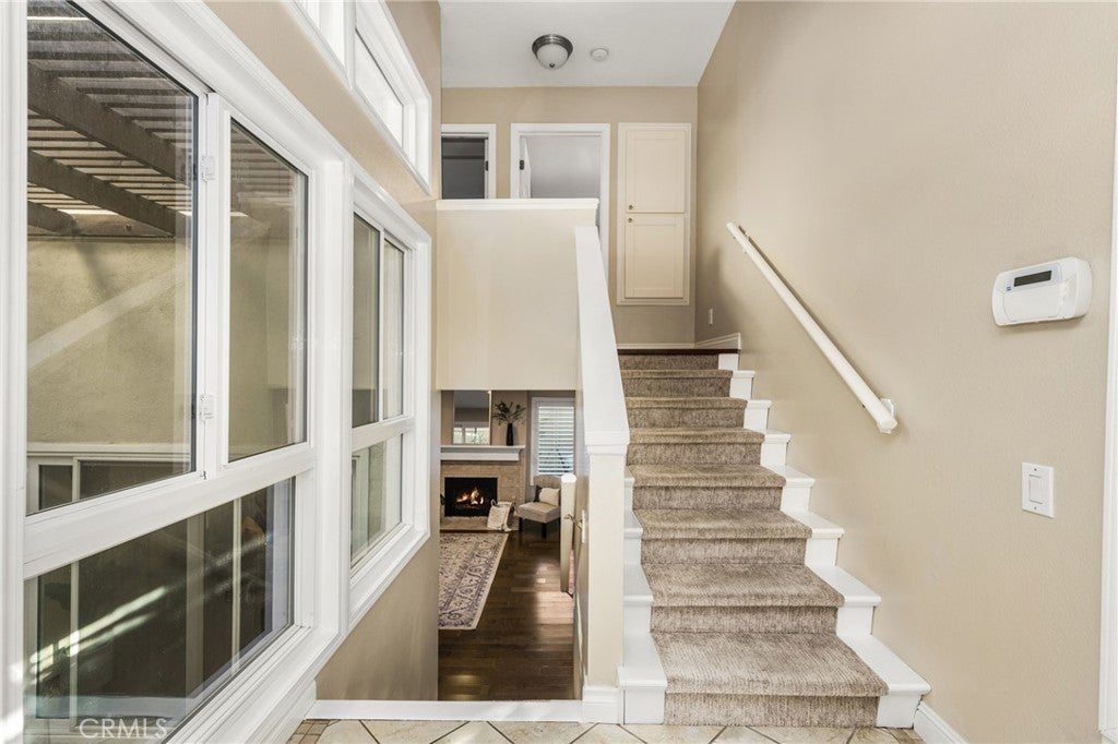 This beautifully upgraded townhome sits alongside scenic Craig Park, just minutes from Cal State Fullerton, Brea Mall, major freeways, and dining. With thoughtful updates, seamless indoor–outdoor flow, and abundant natural light, the home is perfectly suited for everyday living. Enter through a spacious foyer, that separates the two levels. The main floor features a spacious living room with rich hardwood floors, a custom fireplace, recessed lighting, and plantation shutters, all open to the central atrium and private patio. The dining area offers an inviting space for gatherings. The remodeled kitchen boasts granite countertops, upgraded hardware, and a breakfast bar that serves the dining room. Just beyond, an enclosed patio offers a peaceful setting for morning coffee or evening unwinding. Upstairs, the primary suite impresses with vaulted ceilings, recessed lighting and a large sliding door to an oversized balcony. A beautiful updated bathroom offers dual vanities, and walk in shower. A secondary bedroom also features vaulted ceilings, plantation shutters, and a generous closet. A third bedroom overlooks the lush atrium and is ideal as a home office or guest room. The oversized garage with direct-access has extensive built-in storage and is a rare bonus. Located in a small enclave of townhouses with pool and spa. Meticulously maintained and thoughtfully upgraded, this home is truly move-in ready.