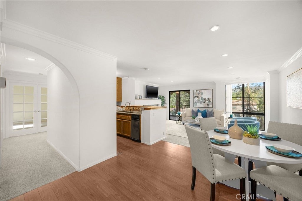 Awesome Views, Spacious Single Level, elevator access, located in the Prestigious Murphy Hill development with gated entry. This light, bright, Open Floor Plan with 2 Bedrooms and 2 Baths, located on the second floor, is ready to Impress starting from the moment you drive up to the Gated Entry and catch a glimpse of the gorgeous mature Trees and Landscaping. As you enter through the double doors of this charming home, you will be greeted by the Open Floor Plan flooded with nature light and Alluring view. Living room has a cozy fireplace, nearly floor to ceiling windows, recessed lighting, crown molding, great balcony, and fabulous view. Balcony access from the living room creates a peaceful flow from inside to out and feels like an extension of the living room. The dining area is open to the living room and kitchen which creates an integrated space for every day living and great for entertaining. Inviting kitchen with pantry and updated countertops and Backsplash. The Large Private Primary suite with awesome view and full Bath feels like a private retreat. Primary Suite features include a large closet with mirrored wardrobe doors and additional built-in cabinet which is impressive. Primary Bath is a full bath with shower in oversized jetted tub. Second bedroom has a French door entry, walk-in closet, recessed lighting, crown molding, and cute balcony which overlooks a beautiful fountain. The second bath is also a full bath with a shower in a tub. And yes, there is an Inside Laundry area with shelving which is so convenient. All this with Elevator access to your Two subterranean parking spaces. Located in Beautiful Murphy Hill with Resort Style Pool and Spas, close proximity to Quaint Uptown Whittier, Whittier College and Hiking Trails makes it a must see. If this is not enough, you will have No Water Bill or Trash Bill making this an exceptional opportunity for you to make this your Home!