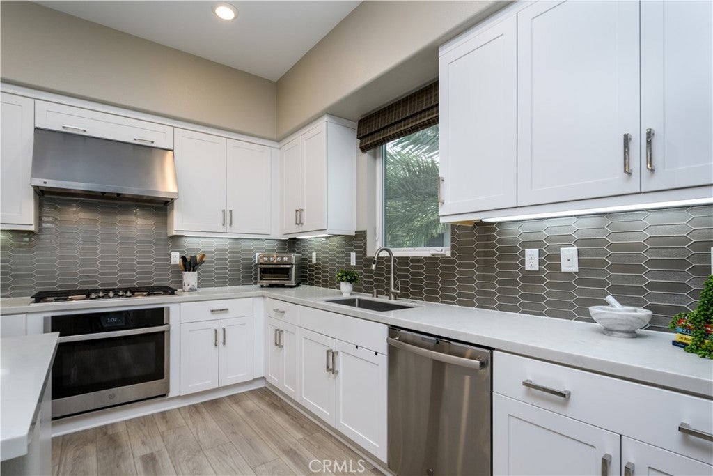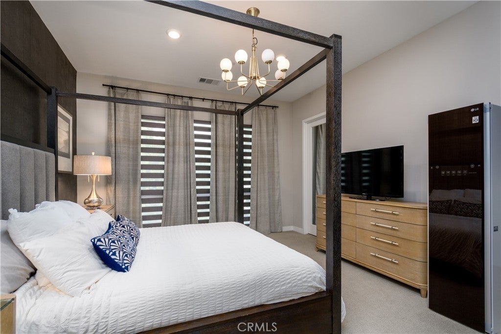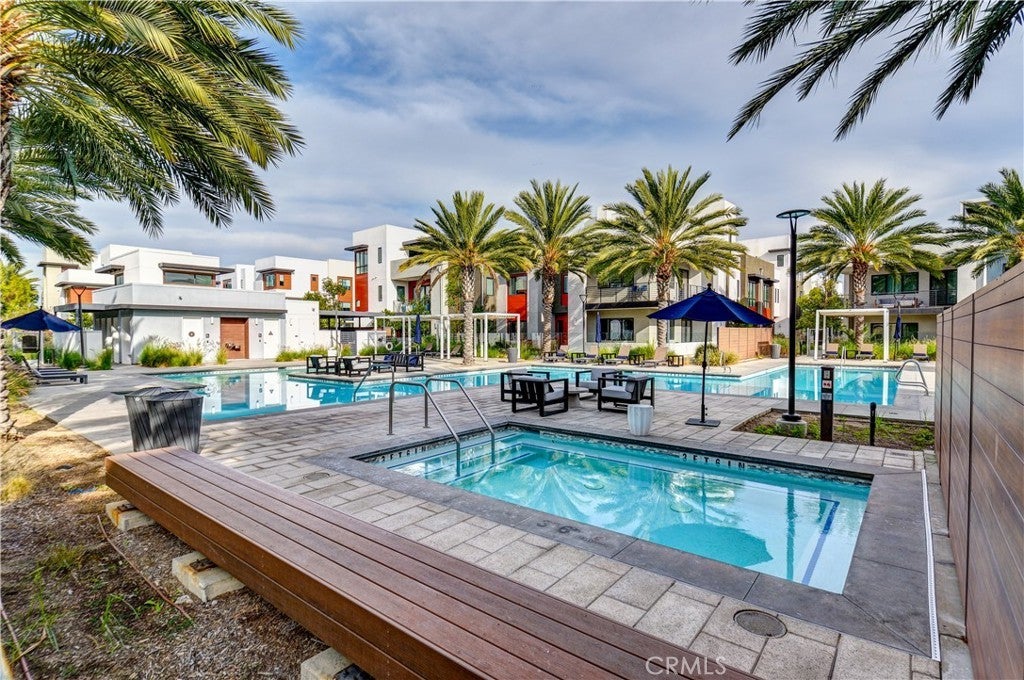 Discover elevated modern living in this stunning former model home in the highly sought-after Levity community at Tustin Legacy. Built in 2018 by Lennar, this rare, largest-floor plan tri-level residence offers 4 bedrooms, 4 bathrooms with 3,038 square feet, and exceptional upgrades throughout—showcasing why it was handpicked as the builder’s showcase home. Thoughtfully designed for comfort, versatility, and style, this home features three ensuite bedrooms, ideal for multi-generational living, guests, or creating private work-from-home suites. Abundant natural light, premium finishes, and contemporary architectural lines define each level. The main living area presents an open-concept great room with sophisticated designer touches, seamlessly connecting to the gourmet kitchen. Here, sleek solid-surface countertops, a spacious center island, custom backsplash accents, and stainless-steel appliances create a perfect environment for daily living and entertaining. Multiple patios—including one off the main level—extend the living space outdoors, offering the perfect spot for morning coffee or evening relaxation. Also on the main level, the primary suite is a serene retreat with large windows, two generous walk-in closets, and a spa-inspired bathroom. Two additional ensuite bedrooms plus a flexible fourth bedroom provide ultimate layout freedom. The top level of this tri-level unit has a huge family living space with built in cabinets and custom modern wall tile accents. Additional highlights include upgraded flooring, recessed lighting, modern window treatments, central HVAC, and an attached two-car garage. Living in Levity means enjoying resort-style amenities, including a sparkling pool, spa, and BBQ area—all just steps from Victory Park. The location is unmatched: walk to The District at Tustin, Whole Foods, dining, movies, shopping, Farmers Market, and the expansive Tustin Legacy parks system. Commuting is seamless with quick access to the 5, 55, and 405, plus John Wayne Airport only minutes away. Top-rated schools, including Legacy Magnet Academy, enhance the appeal. With its model-home upgrades, rare 4-bed/4-bath layout, multiple ensuite bedrooms, and the largest floor plan in the community, 413 Transport delivers the space, style, and convenience today’s buyers want—wrapped in a move-in ready modern package.