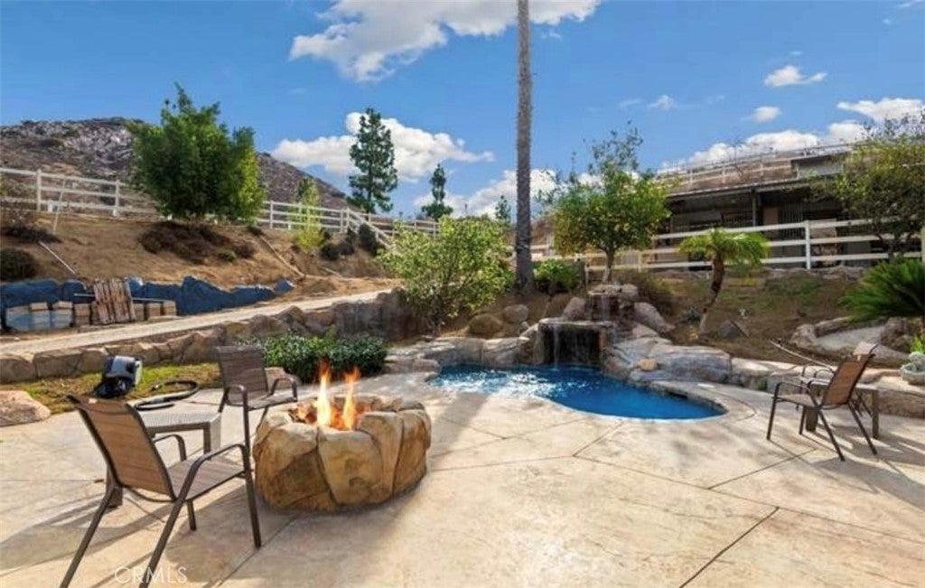 Discover exceptional living in the heart of Horse Town USA in the coveted Norco Ridge Estates community—one of the area’s premier equestrian neighborhoods. This spacious 5-bedroom, 3.5-bath home offers the perfect blend of comfort, versatility, and lifestyle, highlighted by dual primary suites on both the main level and second floor, ideal for multi-generational living or hosting guests. The open-concept design creates a warm and inviting flow throughout the main living areas. At the center of the home is a stunning gourmet kitchen featuring a sprawling island, granite countertops, and quality finishes—an ideal space for cooking, gathering, and entertaining. Go out to the backyard to enjoy true Southern California outdoor living. The expansive, entertainer-ready space includes a covered patio, stamped concrete hardscape, built-in firepit, BBQ island, and a sparkling pool with a waterfall feature—perfect for weekend fun or relaxing evenings. Equestrian and outdoor lovers will appreciate the RV parking and three horse stalls, offering the rare convenience this community is known for. This remarkable home offers endless potential and is ready for your personal touches. Don’t miss your chance to own in Norco Ridge Estates—schedule your private showing today