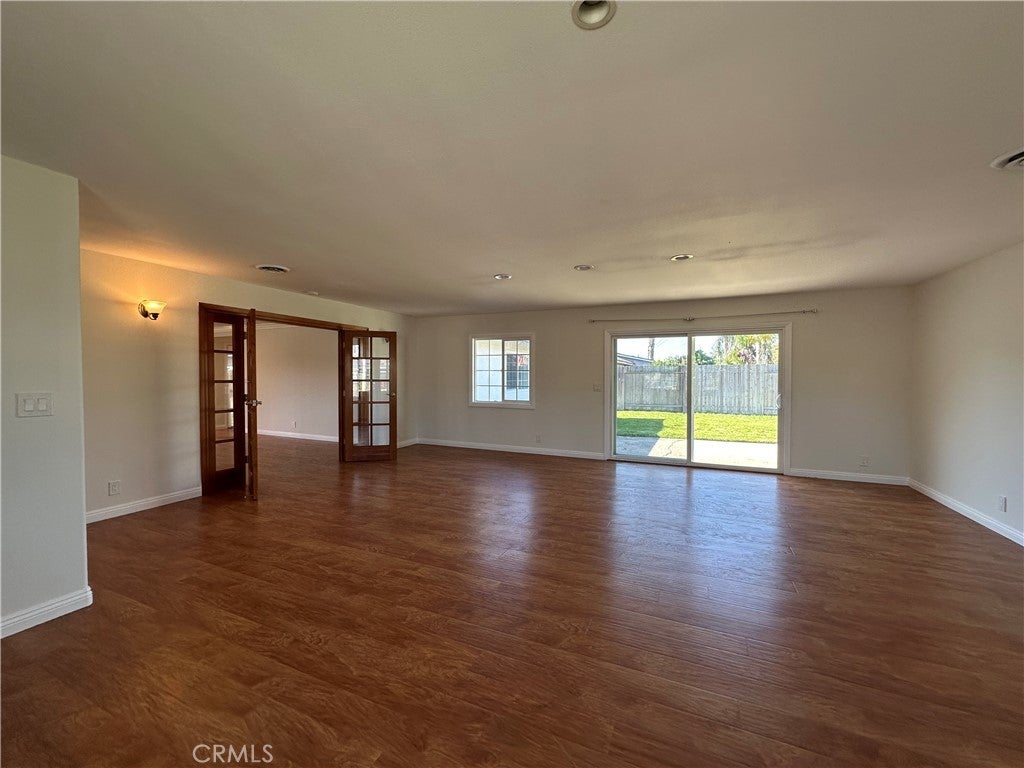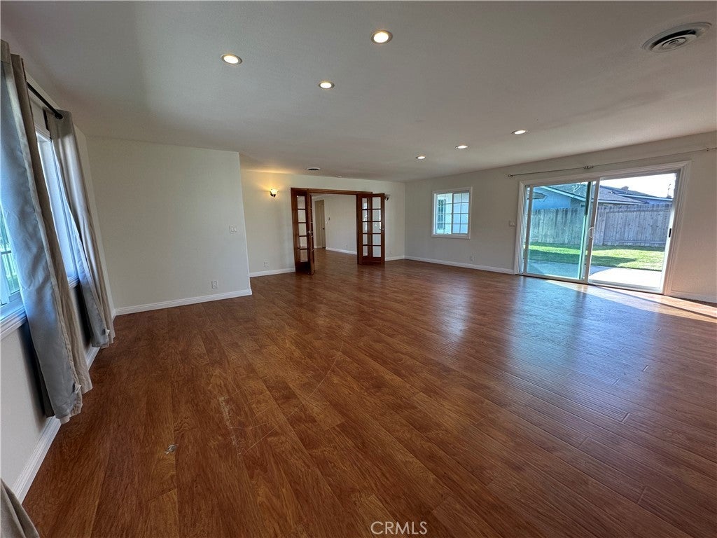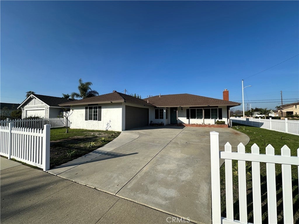 Beautifully 4-bedroom, 2-bath home featuring fresh interior paint throughout. Enjoy a formal living room with a cozy fireplace, and a charming kitchen with granite countertops, white cabinetry, and a spacious walk-in pantry. Elegant wood French doors lead to a large family room, perfect for gatherings. Both bathrooms have been newly remodeled. The property is surrounded by a new white picket fence and includes a 2-car attached garage with convenient laundry hookups. All this, just a few miles from the beach.