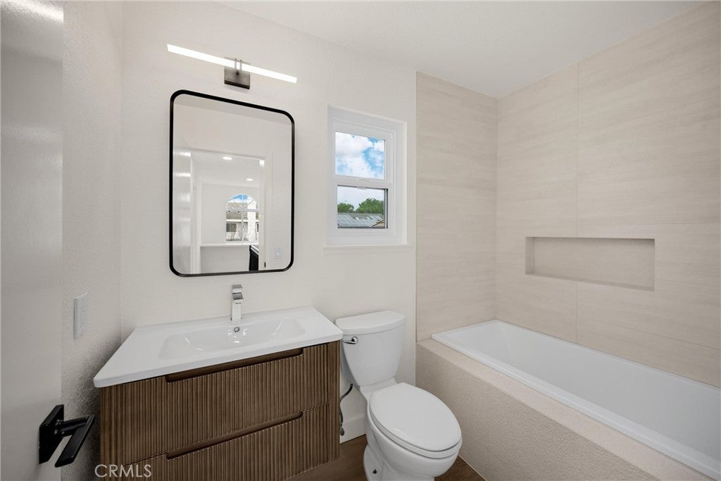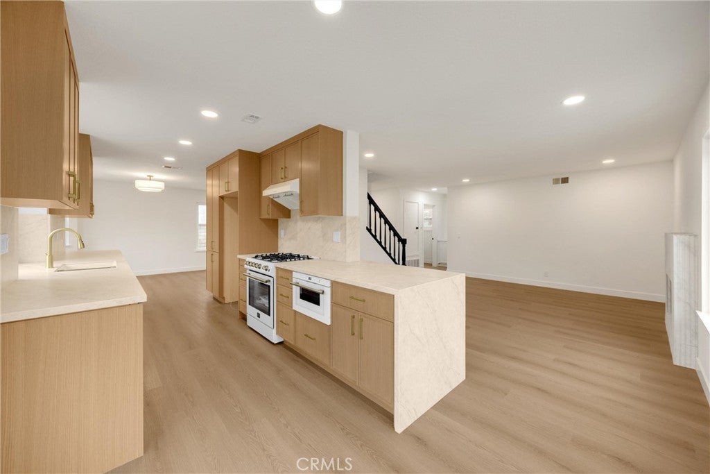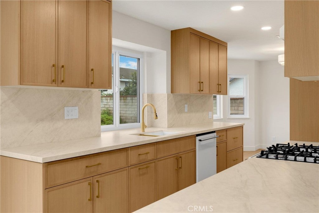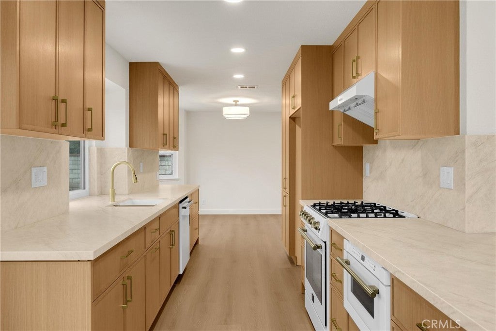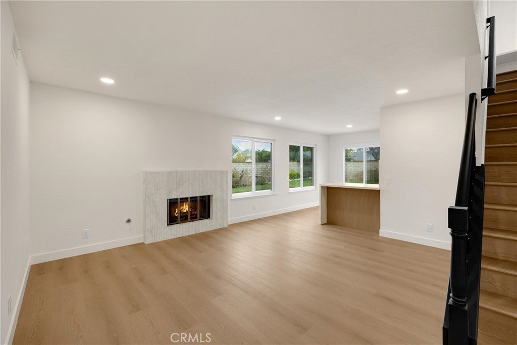 Step into this beautifully redesigned Spanish-contemporary home featuring warm, custom finishes and a cohesive modern aesthetic. The kitchen is fully upgraded with custom slim white oak shaker frameless cabinetry, stone quartz countertops, a high-end White Forno appliance package, and new dual-pane black-frame (white inside) windows that enhance natural light. The living area offers a refined focal point with a fluted Calcutta fireplace, paired with luxury vinyl plank flooring and fresh interior and exterior paint for a polished, inviting feel. The primary suite features a custom walk-in shower, dual vanity, and designer touches that elevate the space including LED lighting in the primary shower. Throughout the home, thoughtful material selections and upgraded fixtures complement the overall Spanish-contemporary design including a quartz working desk at the top of the stairs, perfect place to have your coffee and get some work done. Located near local shopping, dining, and conveniences, this home also offers easy access to Cal Poly Pomona, making it an excellent option for those seeking proximity to campus or nearby employment centers. The property is situated within the Walnut School District, known for its top primary schools, providing additional appeal for long-term living and value. With its modern upgrades, craftsmanship, and desirable location, this home is move-in ready and designed for comfortable Southern California living.