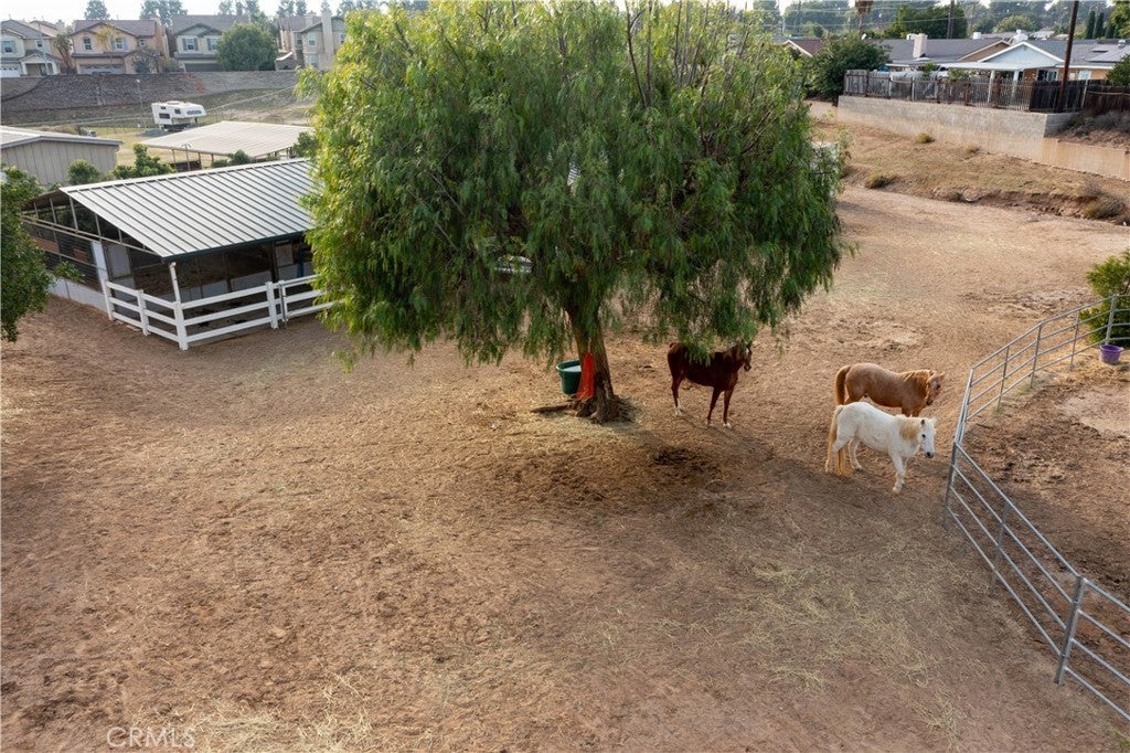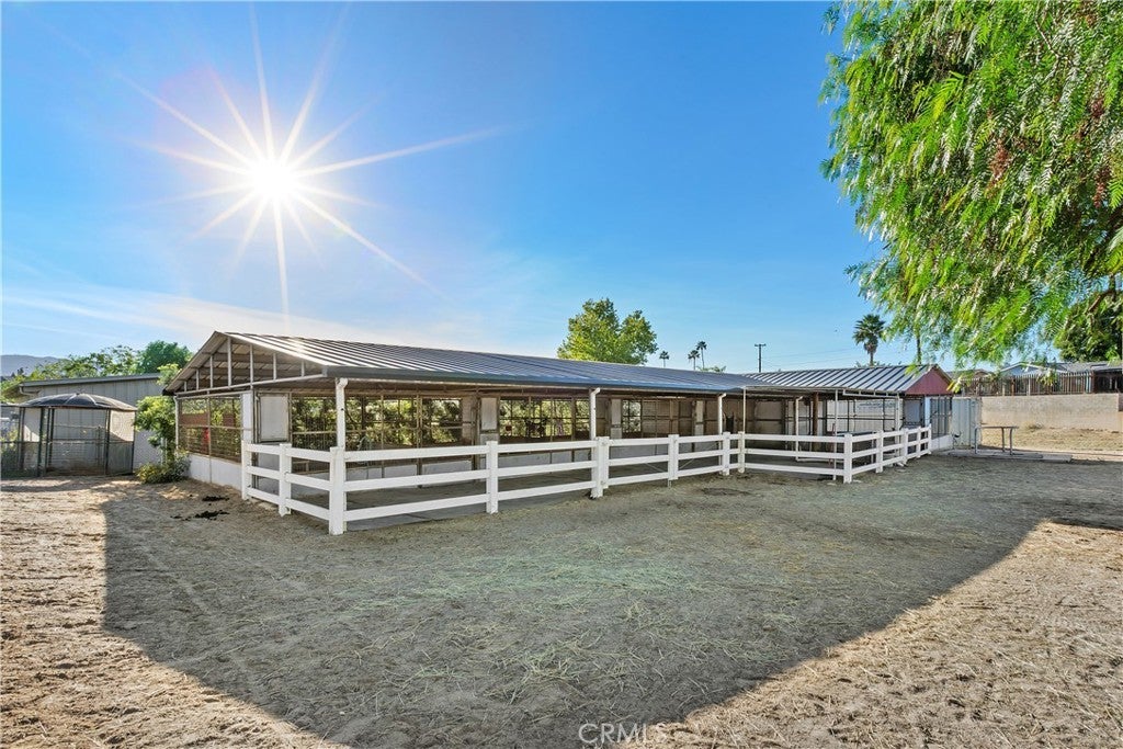 Step into a lifestyle designed for horse lovers and ranch seekers. This thoughtfully upgraded, nearly one acre Norco property blends comfort, function, and equestrian excellence, offering a rare opportunity to live, ride, and thrive in the heart of Horse Town USA. Equestrian amenities include five fully stud wired stalls (four 16’ x 20’, one isolation), with three stalls fully matted and covered; automatic waterers; full LED lighting; and a 120 foot round pen bordered by fern pines. A large California pepper tree stands at the center of the property, creating a beautiful natural shade canopy for horses and riders. The tack room doubles as the feed room and is fully shelved for grooming gear, medicine, and supplies. A horse wash rack, mobile mini storage unit, and open pasture space complete the professional grade setup. Inside, the ranch style home impresses with an open, inviting layout. Wood look porcelain floors carry through the main living areas, while the kitchen features granite countertops, white cabinetry, and convection double ovens. Additional highlights include a walk in pantry, dual pane windows, a spacious laundry station, and a primary suite enhanced by travertine stone and a cozy gas fireplace. A 400 square foot bonus bedroom off the garage adds valuable flexibility for guests, office space, or hobbies. The property also features 200 amp power, private road access, drought resistant front landscaping, a vegetable garden, RV parking, and direct access to Norco’s riding trails and the Santa Ana River. A fully owned 36,000 dollar solar system adds major value, with last year’s electric bill totaling just 85 dollars for the entire year. This property is not just a home; it is a turnkey ranch experience in one of Southern California’s most beloved equestrian communities.