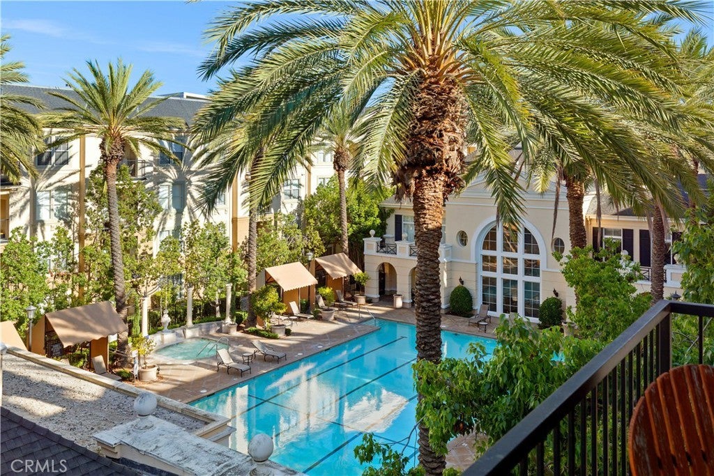Luxury Top-Floor Penthouse Life Style with Panoramic Pool Views at Watermarke, Irvine. Welcome! This top-floor 2-bedroom, 2-bath condo offers total privacy with no neighbors above, no neighbor next door, and unobstructed views of the resort-style pool, this residence blends sophistication, comfort, and exclusivity. The home welcomes you with a bright, expansive open layout and an upgraded gourmet kitchen appointed with granite countertops, stainless steel appliances, and elegant custom cabinetry. The primary suite provides a tranquil retreat with serene pool vistas, a spacious walk-in closet, and a luxuriously appointed en-suite bath. The secondary bedroom is equally well designed, featuring generous space and storage. A noteworthy highlight of this 1,260 sqft of spacious living property is the inclusion of 2 private, covered parking spaces located on the same level, 4th floor—a rare and highly desirable convenience within the community. An in-unit laundry room adds to the overall ease and functionality of the home. Residents enjoy access to Watermarke’s extensive amenity collection, including a 7-days-a-week concierge, a grand clubhouse with movie theater and business center, a junior Olympic–sized heated pool, private gated area, multiple spas, a state-of-the-art fitness center, tennis and basketball courts, and beautifully landscaped grounds. Situated moments from UC Irvine, John Wayne Airport, Irvine Spectrum, premier shopping, dining, and Irvine’s finest conveniences, this penthouse offers an exceptional blend of luxury and accessibility.