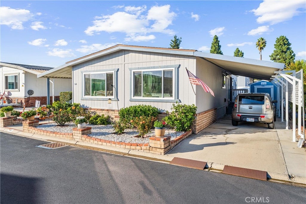 Welcome to Santiago Creek Estates, a well-established and exceptionally maintained 55+ community in the heart of Orange. This neighborhood is known for its peaceful atmosphere, friendly long-term residents, and well-kept shared amenities, including a pool, clubhouse, and community gathering spaces. It’s the kind of place where people look out for one another and take pride in where they live. This comfortable, 1,152 sq ft home offers a functional layout designed for easy living. Inside, you’ll find two generously sized bedrooms, two full bathrooms, and an open floor plan that provides plenty of space without unnecessary upkeep. The kitchen flows directly into the living area, making daily routines simple and convenient. A separate dining room with built-in cabinetry adds useful storage and flexibility for hosting family or enjoying hobbies. Additional conveniences include an indoor laundry room, a large covered patio, and a secondary grassy area ideal for pets, gardening, or relaxation. The covered carport accommodates multiple vehicles and provides sheltered access to the home. If you’re looking for a well-run, friendly, and affordable community with a practical home that offers space, comfort, and low-maintenance living, Santiago Estates is the perfect fit.