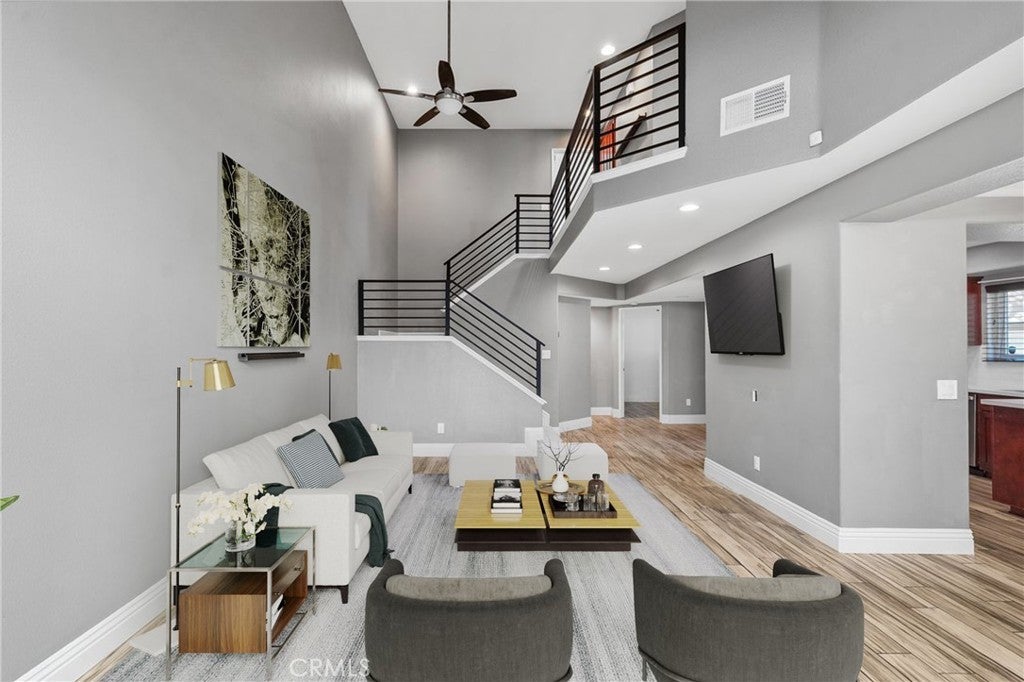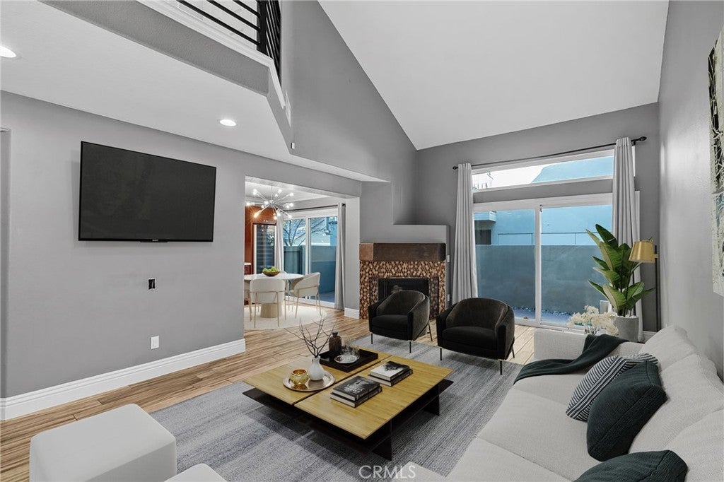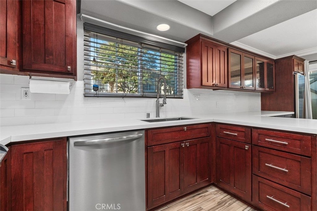 Welcome to the Laurelwood Community, where comfort, style, and a touch of “finally, a place that checks all the boxes” come together. This beautifully upgraded 3-bedroom, 3-bathroom end-unit townhome offers 1,615 square feet of smartly designed living space, starting with the wood-look tile flooring that spans the entire first level. The kitchen delivers on both form and function with quartz counters, ample cabinetry, and stainless steel appliances—because yes, you can have good taste and good storage at the same time. A main-floor bedroom and full bath offer ideal flexibility for guests, in-laws, or that home office you swear you’re going to use. Upstairs, you’ll find two spacious en suite bedrooms, including a remodeled primary suite featuring dual sinks, a cedar-lined walk-in closet, and a walk-in shower that basically begs you to linger. Fresh brand-new carpet keeps the second floor feeling plush, while the enclosed patio out back is perfect for relaxing or squeezing in some outdoor time without leaving home. Located at the quiet rear portion of the community with ample guest parking, this home also enjoys access to two sparkling community pools and spas, because California living just hits different with options. Top it off with a 2-car attached garage, inside laundry room and walk-ability to restaurants, grocery stores, and other destinations and you’ve got a turnkey home that blends convenience, comfort, and elevated style in all the right ways.
