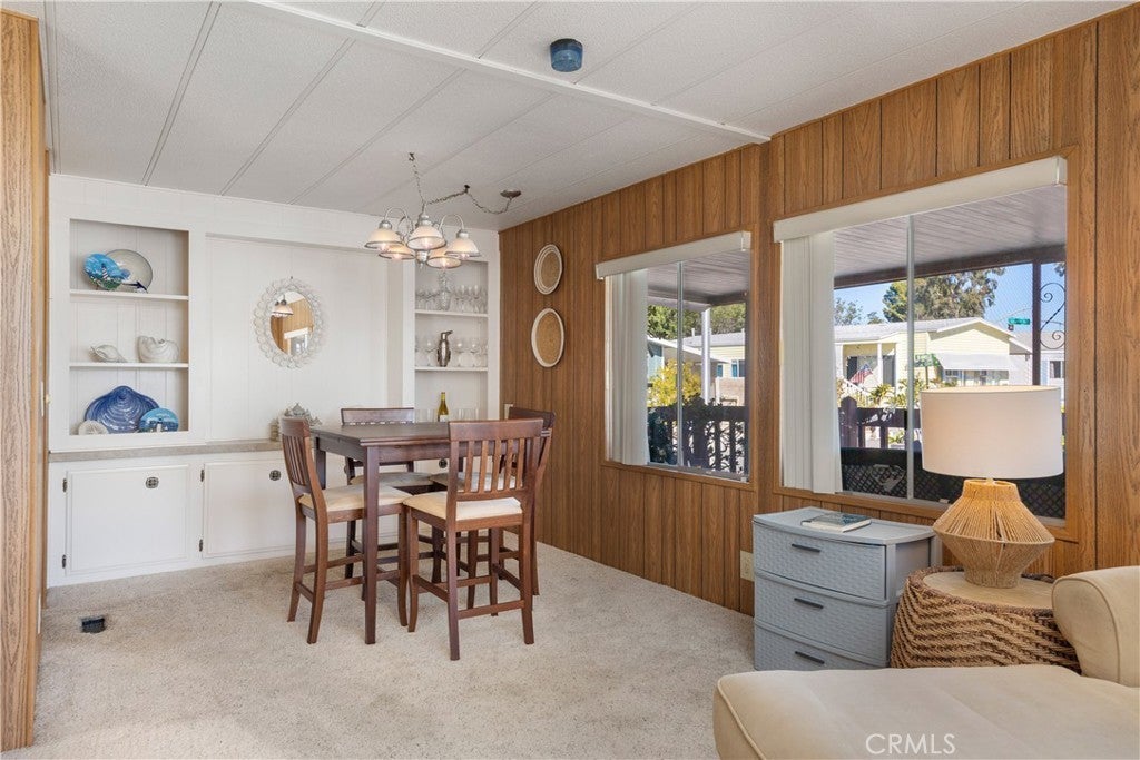 2-bedroom, 2-bath, 1,152 sq ft manufactured home in a well-established 55+ community at Belmont Shores Mobile Estates near the marina. The home offers a spacious living area, a functional kitchen, and two bedrooms, including a primary suite with attached bath. Features include central air, ceiling fans, recessed lighting, carpeted flooring, and community amenities including pool and spa. The residence is located on leased land, and offers comfortable, low-maintenance living in a senior-oriented coastal neighborhood.