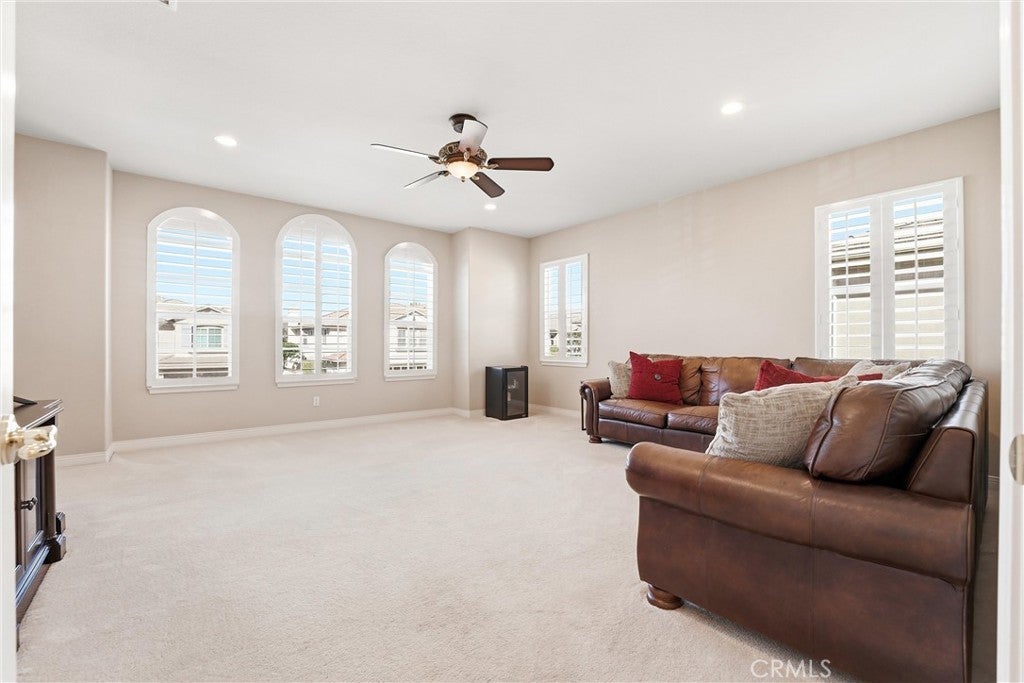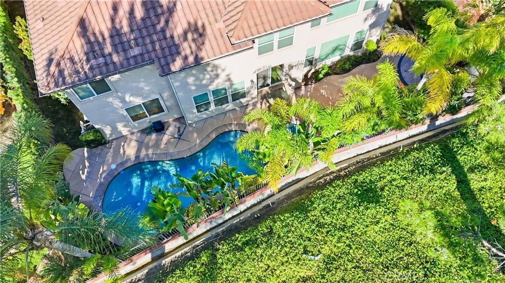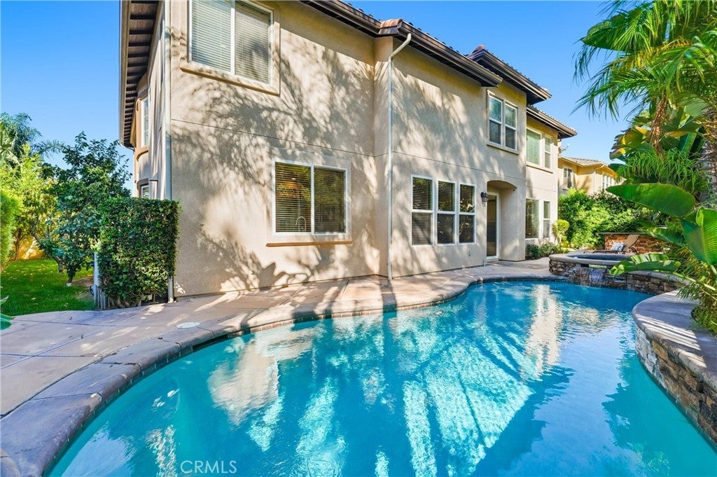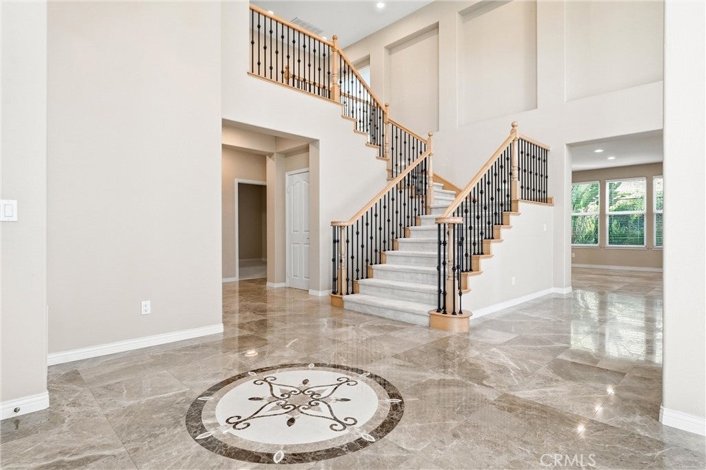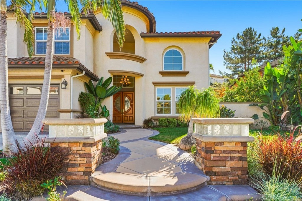 Yorba Linda estate located in the Pointe at East Lake, one of East Lake Village’s most coveted neighborhoods. This impressive 4,261 sq. ft. residence features 5 bedrooms and 5 baths, thoughtfully designed for both grand entertaining and everyday comfort. Nestled on a quiet cul-de-sac street, this exceptional home offers luxury living at its finest with a true resort-style backyard. A dramatic entry welcomes you with expansive marble flooring and soaring two-story ceilings that elevate the formal living and dining areas, filling the space with natural light and elegance. The gourmet kitchen is a chef’s delight, showcasing extensive counter space, premium stainless-steel appliances, and a generous center island with prep sink. The kitchen flows seamlessly into the inviting family room, highlighted by a fireplace and large picture windows that capture views of the backyard. The main level also includes a spacious en-suite bedroom with a walk-in closet, ideal for guests or multigenerational living, along with a stylish powder room and an oversized laundry room offering abundant cabinetry. Upstairs, the spacious primary suite provides a private retreat area and a spa-inspired bathroom featuring dual vanities, a jetted tub, separate walk-in shower, and two large walk-in closets. Three additional oversized bedrooms complete the upper level: one with its own en-suite bath, and two sharing a generous dual-sink bathroom. The 5th bedroom is large enough to serve as a game room, media room, or junior suite. Step outside to a backyard designed for unforgettable days and evenings, your own private oasis with a resort-style pool and spa with waterfall feature, and a large built-in BBQ island with grill and refrigerator. Professionally landscaped with fire ring, palm trees and seating wall. Other amenities include a roomy 3 car attached garage, tile roof and 2 HVAC systems. The wide 14,400 sq. ft. lot has double gates on the side for paved parking access. Low HOA dues, low property tax rate and no Mello Roos tax. Residents of East Lake Village enjoy an array of amenities including multiple pools, a private lake with fishing and boating, scenic walking paths, clubhouse, gym, and year-round community events. This remarkable home blends luxury, lifestyle, and location and is attractively priced below recent closed sales of this model. Welcome to East Lake Village living at its best.