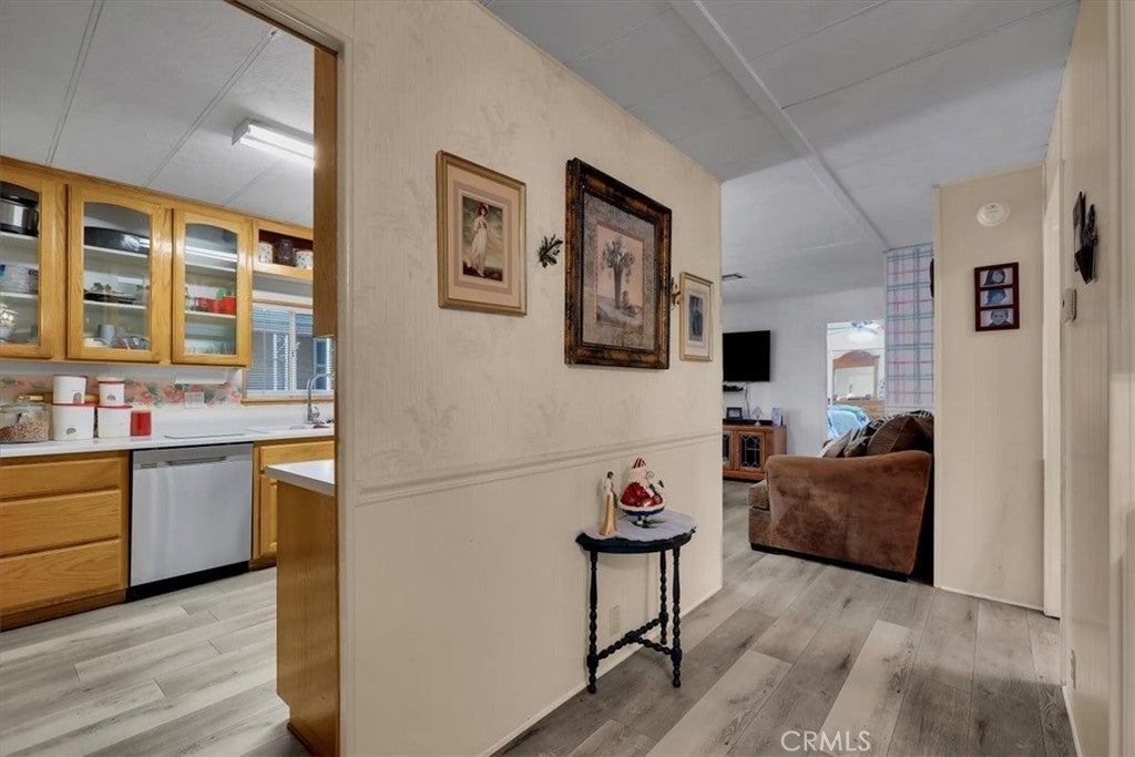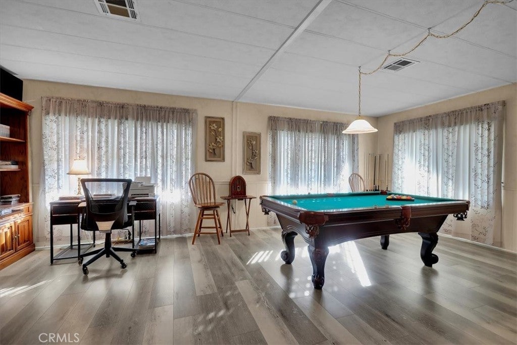 Welcome to this charming 2-bedroom, 2-bath, 1,344 sq ft home located in a beautifully maintained 55+ senior community. This spacious residence features a bright living room, a large dining area with built-in cabinetry, and a well-appointed kitchen with plenty of storage. The living room has been professionally reinforced to support the weight of a full-size pool table, making it perfect for entertaining or enjoying your favorite hobbies. The home also offers a covered carport, indoor laundry, and a low-maintenance yard with mature fruit trees. Clean, comfortable, and full of potential—this home is ready for its next owner to make it their own.