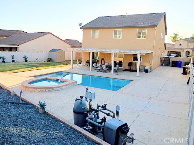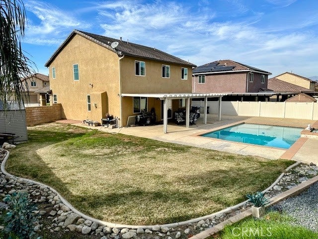 I am pleased to present a stunning, turnkey four-bedroom, two-and-a-half-bathroom home located in a highly desirable Jurupa Valley community. This property is just a short distance from Louis Vandermolen Fundamental Elementary, place of worship, Goose Creek Golf Club, shopping and easy freeway access. The first floor features a living room, a half bathroom, and an open-concept living space that seamlessly connects the kitchen, dining room, and family room with a working fireplace. The custom kitchen and island are finished with granite countertops. All four bedrooms are located upstairs. The primary suite boasts a large five-piece en-suite bathroom and an extensive closet. Outdoor features include a permitted inground pool and spa, which were added in 2020. The pool light and water features are customizable and controllable via a phone application. The property also sits on one of the largest lots on the street (10,000+ sqft) and includes potential RV parking. Completing this exceptional package are paid-off solar panels. This is truly a must-see home. Professional photos coming soon.