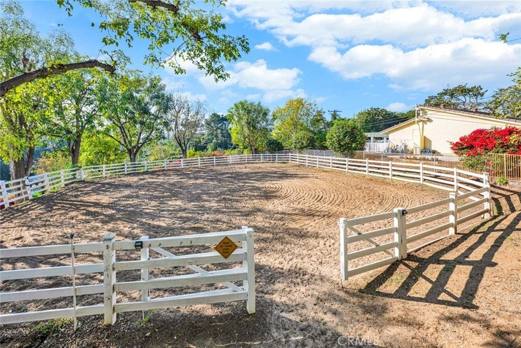 Welcome to 1419 Richman Knoll, a Sprawling Equestrian Estate Features a Single-Level Ranch Home Nestled on a Tree-Lined Cul-de-Sac Street in the Highly Sought-After Green Acres Community of Fullerton. Situated on a Usable Acre Lot with Equestrian Facilities, Pool, Spa, and Multiple RV Parking Spots, this Dream Home Showcases a Total of Six Bedrooms with Four and a Half Bathrooms. The Main House Features Four Bedrooms, Two and a Half Bathrooms, and 3,388 SqFt. The Larger 592 SqFt. ADU Enjoys a Family Room, Kitchenette, Bedroom and Bathroom. The Secondary 370 SqFt. Studio Unit ADU Offers a Dual Family/Bedroom Area, Kitchenette, Office Nook, Bathroom, and Direct Access to an Outdoor Deck Crafted With Long-Lasting Trex® Decking. In the Main House the Formal Living Room Features Wood-Beamed Ceilings, and Cozy Fireplace. The Family Room Includes a Dining Area with Fireplace and Wet Bar. Each Room Showcases Dual 12-Foot Glass Walls That Seamlessly Retract Into Concealed Wall Pockets, With Integrated Custom Retractable Screens, Creating Seamless Indoor-Outdoor Living to the Backyard. The Formal Dining Room Sits Adjacent to the Family Room and Kitchen. The Gourmet Kitchen Enjoys Vaulted Ceilings, Granite Counters, Two Copper Sinks, Dual Ovens, Wine Fridge, Warming Drawer, Six Burner Stove, Walk-In Pantry, and Breakfast Nook with Built-In Desk Area and Backyard Access. The Private Yard Features a Resort Style Pool, Spa, Water Features, Outdoor Kitchen with Built-In BBQ and Mini Fridge, Covered Patio, Pergola, Additional Outdoor Trex® Deck, Pavers, Firepit, Large Grass Area, Landscape Lighting, and Multiple Seating Areas. Full Equestrian Amenities Equipped with Power, Water, Lighting, Outdoor Sink, Four Box Stalls, Three Oversized Pipe Stalls and One Mini Horse Stall, Tack Room, Feed Room, Storage Room, Wash Station, and Riding Arena with Lighting. Direct Access to Miles of Fullerton Loop Riding Trails Perfect for Walking, Biking, or Riding. Indoor Laundry Room with Built-In Cabinets and Sink. Three Car Garage with Built-In Storage. Centrally Located by Award-Winning Schools Including Blue Ribbon Laguna Road Elementary and Troy High School, Shopping Centers, Restaurants, Fullerton Golf Course, and St. Jude Hospital. 1419 Richman Knoll is a Must See!!
