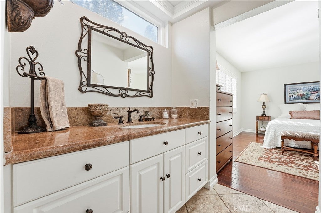 Welcome to Your New Home in Granada Park—One of Cerritos’ Most Desirable Communities. Located within the highly acclaimed ABC Unified School District, this beautifully maintained single-story home offers 4 bedrooms and 2 bathrooms, thoughtfully upgraded throughout. From its inviting curb appeal to its stylish interior, this residence shines with pride of ownership. Step inside to discover an open and elegant layout featuring vaulted ceilings, hardwood flooring, and plantation shutters throughout. The spacious living room boasts an airy atmosphere and a cozy fireplace, ideal for relaxing on cool evenings. Adjacent is the formal dining room—perfect for gatherings, holidays, and entertaining. The updated kitchen is designed for both beauty and function, showcasing granite countertops, travertine flooring, a center island, and a double oven—everything you need to inspire your culinary creations. An indoor laundry room offers convenience and keeps everyday living effortless and organized. The primary suite includes a walk-in closet and a remodeled private ensuite bathroom. Two additional bedrooms offer generous space and storage, while the fourth open bedroom is currently used as a TV/Media room, providing flexibility for your lifestyle needs. The outdoor spaces are just as impressive. With over $40,000 in landscaping upgrades, the home features Synthetic Turf across the front, side, and backyard—ideal for a low-maintenance lifestyle. Beautiful hardscaping accents the exterior, complementing the outdoor lighting, mature Magnolia tree, and carefully selected flowers and shrubs, all supported by a drip system. The private backyard is surrounded by lush greenery—also on drip irrigation—providing both tranquility and an inviting space for modern outdoor entertainment and relaxation. Community amenities elevate everyday living in Granada Park, where residents enjoy a gated greenbelt with scenic walkways ideal for evening strolls or morning exercise. Well-maintained community tennis courts are just moments from your doorstep, offering both recreation and convenience as part of your daily lifestyle. This home truly has it all: comfort, style, indoor convenience, thoughtfully designed outdoor spaces, a prime location, and access to top-rated schools. Move-in ready and designed for modern living—don’t miss this exceptional opportunity.