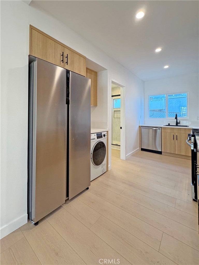 Beautifully updated 2-bedroom, 1-bath standalone casita offering approx. 800 sq ft with no shared walls on a two-unit property. This thoughtfully designed home features a brand-new kitchen with quartz countertops, stainless steel appliances (including dishwasher), new flooring, an updated bathroom, in-unit washer/dryer, new 200-amp electrical panel, and mini-split AC in both bedrooms and the living room. A private rear patio provides the perfect outdoor retreat. Located minutes from Echo Park’s most beloved restaurants, cafés, and shops—including Echo Park Lake, Bacari Silverlake, Pine & Crane, Pijja Palace, Cookbook Market, Stereoscope Coffee, Canyon Coffee, Bar Flores, and Lowboy—this home offers modern comfort in one of LA’s most vibrant neighborhoods. Street parking only.