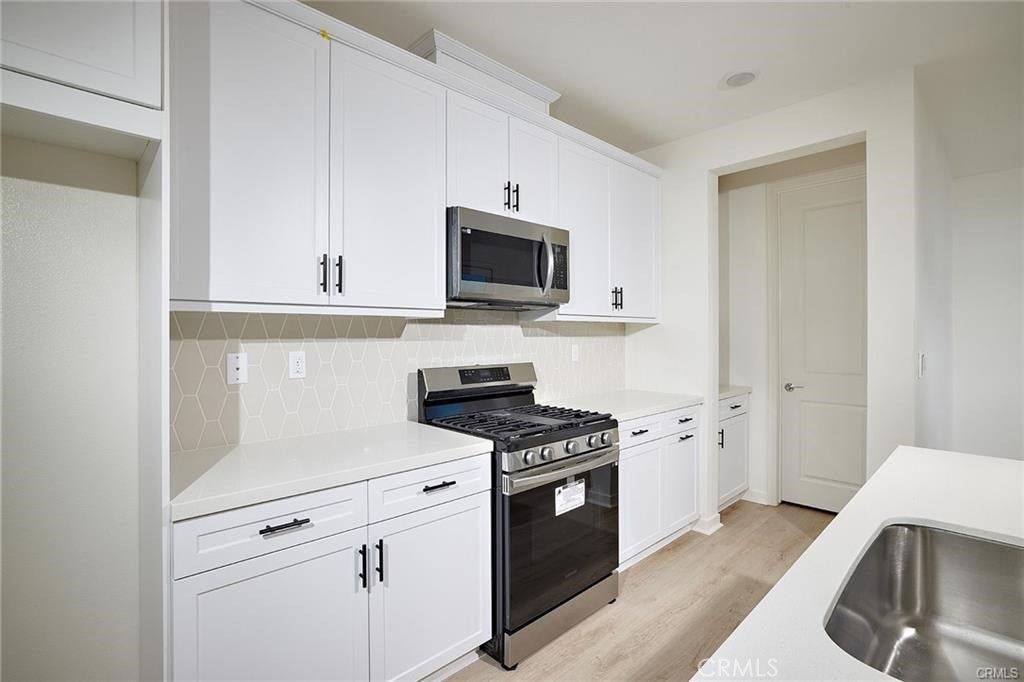 This beautiful home is located in the GATED community in Ontario. As you enter this FRESHLY PAINTED unit, you are greeted with a BRIGHT and OPEN floor plan. DOWNSTAIRS SUITE perfect for guest or to have some separation of space. SPACIOUS living room opens into the kitchen and balcony. CONTEMPORARY UPGRADES throughout the home including, Quartz countertops with full decorative backsplash at Kitchen, Luxury Vinyl Plank flooring, Modern Pendant lights above island. ABUNDANCE of storage throughout the home. IN-UNIT laundry room with washer and dryer hookups. DIRECT ACCESS to two car garage. Home is fully equipped with SOLAR PANELS and EV CHARGER. WELL-MAINTAINED community with a common area green space, BBQ grill, fire pit, and seating. CONVENIENT LOCATION only minutes away from Ontario Mills Outlets, Victoria Gardens, Ontario International Airport, Target, Toyota Area, and everything else you need!
