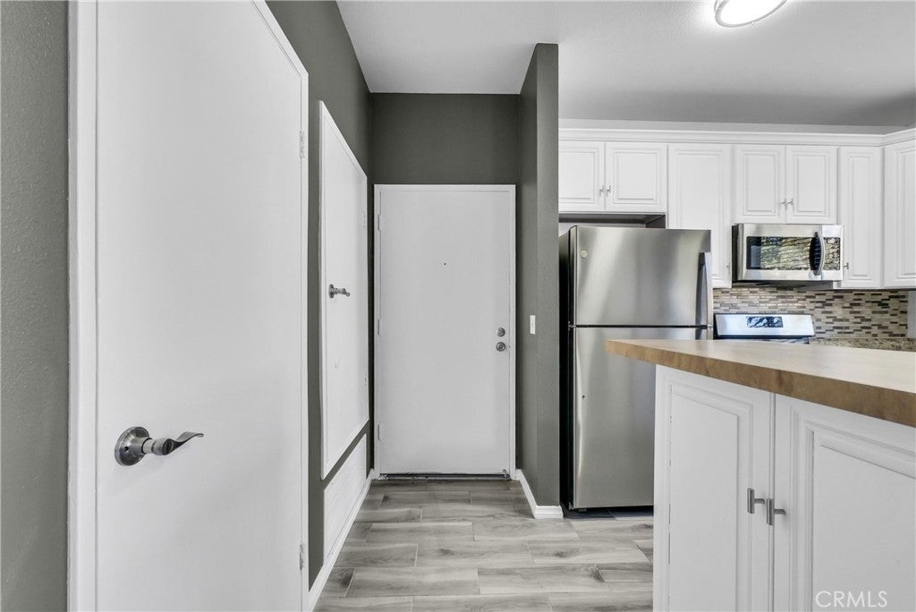 Welcome to this charming and beautifully refreshed single story condominium located in the highly desirable Lakeside community. This move in ready home has been professionally cleaned and freshly painted throughout, offering a bright and welcoming atmosphere from the moment you walk in. The upgraded kitchen features elegant granite countertops, a stainless steel refrigerator, stove, and dishwasher perfect for everyday cooking and entertaining. The spacious living room provides an open concept layout with abundant natural light and large sliding glass doors that open directly to your private patio, creating a seamless indoor outdoor living experience. Convenience is a standout feature, with a stackable washer and dryer thoughtfully located in the hallway closet just steps from the kitchen. The community’s Homeowners Association (HOA) maintains the security gate, common grounds, and trash service, ensuring a well-kept and peaceful environment. Residents will enjoy access to a sparkling community pool and relaxing jacuzzi, along with a lush grassy area ideal for unwinding, playing with pets, or enjoying the sunshine. This pet-friendly property also includes one assigned parking space for added ease. With its single-story layout, fresh upgrades, and inviting community amenities, this home is truly perfect for anyone looking for anyone looking for comfortable, low maintenance living in a fantastic location.