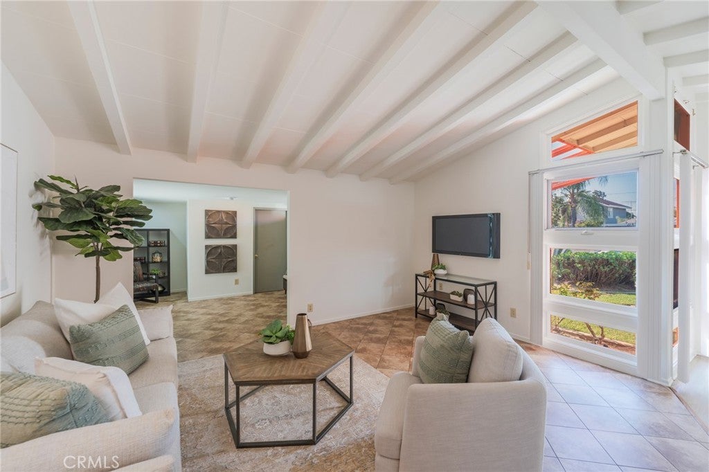 Discover a rare piece of Anaheim history at 934 North Maple Street. This absolutely stunning mid-century home, featuring 3 bedrooms and 1.5 bathrooms across 1,149 sq ft, has been lovingly owned and cared for by the same owner for 42 years. Originally built in 1953 by the renowned Ivan Wells & Son, a firm famous for constructing homes for movie stars in Hollywood and Beverly Hills, this residence offers unique provenance. It boasts beautiful curb appeal and an extra-large driveway with generous parking for extra vehicles, an RV, or a boat. Upon entering, you are greeted by a large formal entry with an office alcove and an insulated sliding door leading to the covered rear patio. The centerpiece is the living room, featuring a dramatic vaulted beam ceiling and floor-to-ceiling corner windows. The home flows seamlessly into a formal dining room and a functional kitchen with custom real maple wood cabinets, a gas stove, solid surface countertops, and ample storage. A permitted addition enhances functionality with an indoor laundry room and a half bath. For comfort, all three bedrooms are perfectly sized, and the entire house features individual ductless heating and air conditioning units for superior energy efficiency. The layout is perfect for entertaining, with direct access to a very large covered patio and a sprawling backyard complete with a mature macadamia tree. Don't miss this opportunity to own a unique Anaheim gem!