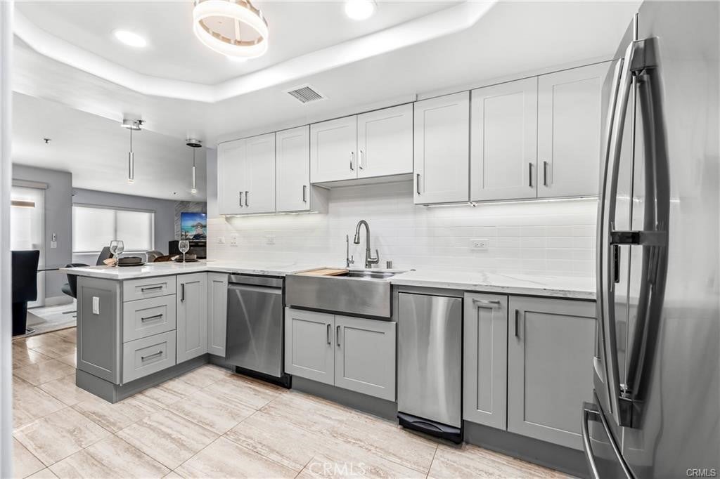 Welcome to 16255 Pacific Circle unit 202, a beautifully updated 3-bedroom , 3-bathroom single level condo in one of Sunset Beaches most sought-after waterfront communities of Bayport—celebrated for its resort-style amenities, unbeatable location, and distinctive coastal charm. The living and dining rooms have an open floor plan with a large balcony that offers harbour views and can be accessed from the living/dining and den areas from three different sliding glass doorways offering lots of natural light throughout. The spacious master bedroom features a large walk-in closet and a spa like en-suite bathroom featuring an infinity spa tub and a large walk-in master shower. Adjacent to the master bedroom, you will find a roomy guest bedroom and full bathroom. The additional den/bedroom offers a full bathroom and can easily be used as a third bedroom or office (there is no closet). Upgrades include a Chef’s Kitchen offering updated cabinets, quartz countertops, stainless steel appliances, a reverse osmosis system plumbed throughout the kitchen, and newer HVAC system. A cozy fireplace, upgraded modern tile floors throughout, built-ins and a neutral palette make this space move-in ready. Located on the second floor, the building offers elevator access and gated in ground parking with two parking spaces and storage. Enjoy the fresh ocean breeze and peaceful, serene environment in this exclusive gated community. Amenities include a tennis court and a marina front pool, spa and club house. Walking distance to Peter's Landing with great dining, restaurants and the beach just across the street. HOA dues include water, trash, maintenance & Ins. Assoc. Club House, sport court, barbecue. Boat slips available for lease next door at Peters Landing.