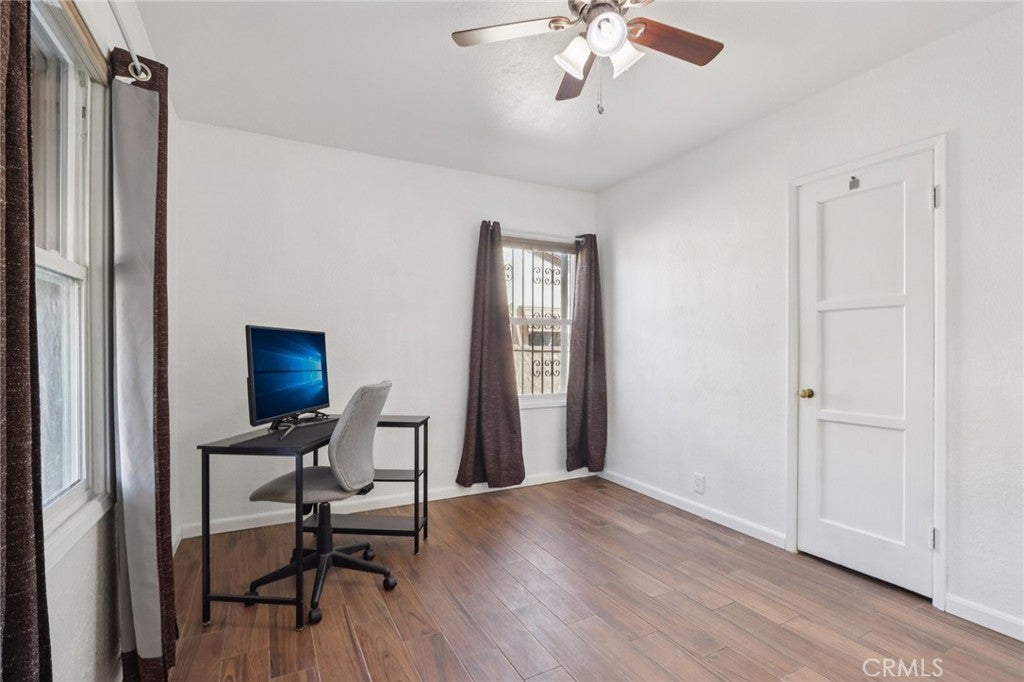 Well-maintained 2-bedroom, 1 bath home offering 910 sq ft of comfortable living in Whittier. Features include original restored hardwood floors, newer flooring in bedrooms, updated bathroom, and newer windows. Bright living areas with a functional layout. Spacious backyard with mature plants and fruit trees, ideal for relaxing or entertaining. 2-car detached garage with cabinets and ample storage. Move-in ready and lovingly cared for.