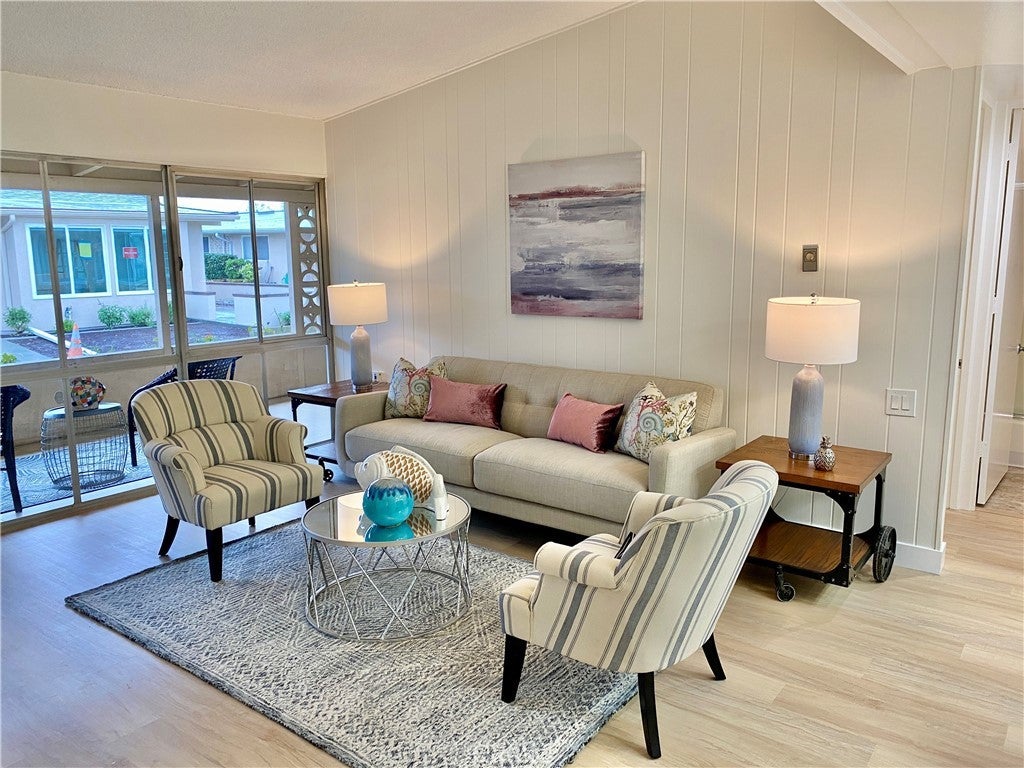 (M5-71E)(Carport bldg 68-Space 47) Clean, move-in ready, east facing unit has just been painted. Cabinets have new hinges and handles. All 3 kitchen appliances are white, and the refrigerator is brand new. New light colored vinyl plank flooring has new base boards. 3 new recessed LED lights, and new landscaping. Solar tube in kitchen and bath. Centrally located in very desirable mutual 5, and near a big greenbelt. Close laundry and carport. SENIOR COMMUNITY OFFERS THE FOLLOWING AMENITIES: 9 Hole Golf Course, Swimming Pool, Jacuzzi, Gym, Table Tennis, Shuffleboard, Billiards, Pickle Ball and Bocce Ball courts. Amphitheater, 6 Club houses featuring: Exercise Gym, Art Room, Sewing, Crafts, Woodshops, Lapidary, Pool tables; Over 200 Clubs, LWSB is a Security-Guard-Gated Community. Also, Library, Friends of Library Bookstore, Credit Union, Health Care Center, Pharmacy), Post Office and Café.